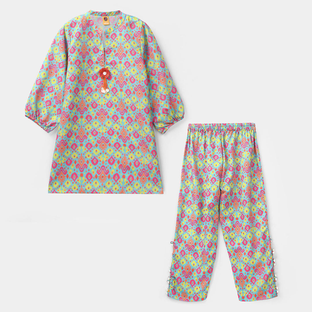 Girls Cotton Poplin Printed 2 Pcs Blossom - Multi