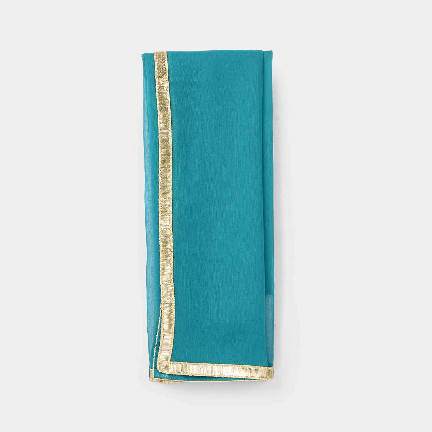 Girls jacquard 3pcs suit in yellow features embroidery, full sleeves, matching culottes, and a contrast green dupatta for a complete festive look.
