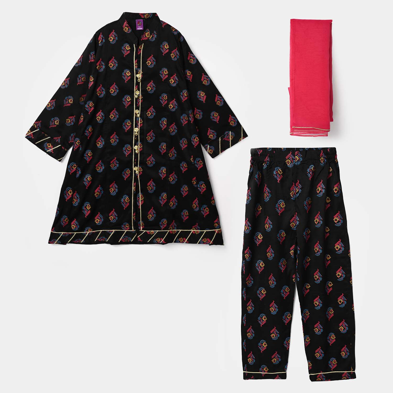 Bachaa Party brings you the best price Girls Raw Silk 3Pcs Aabroo-BLACK with express shipping all over Pakistan.
