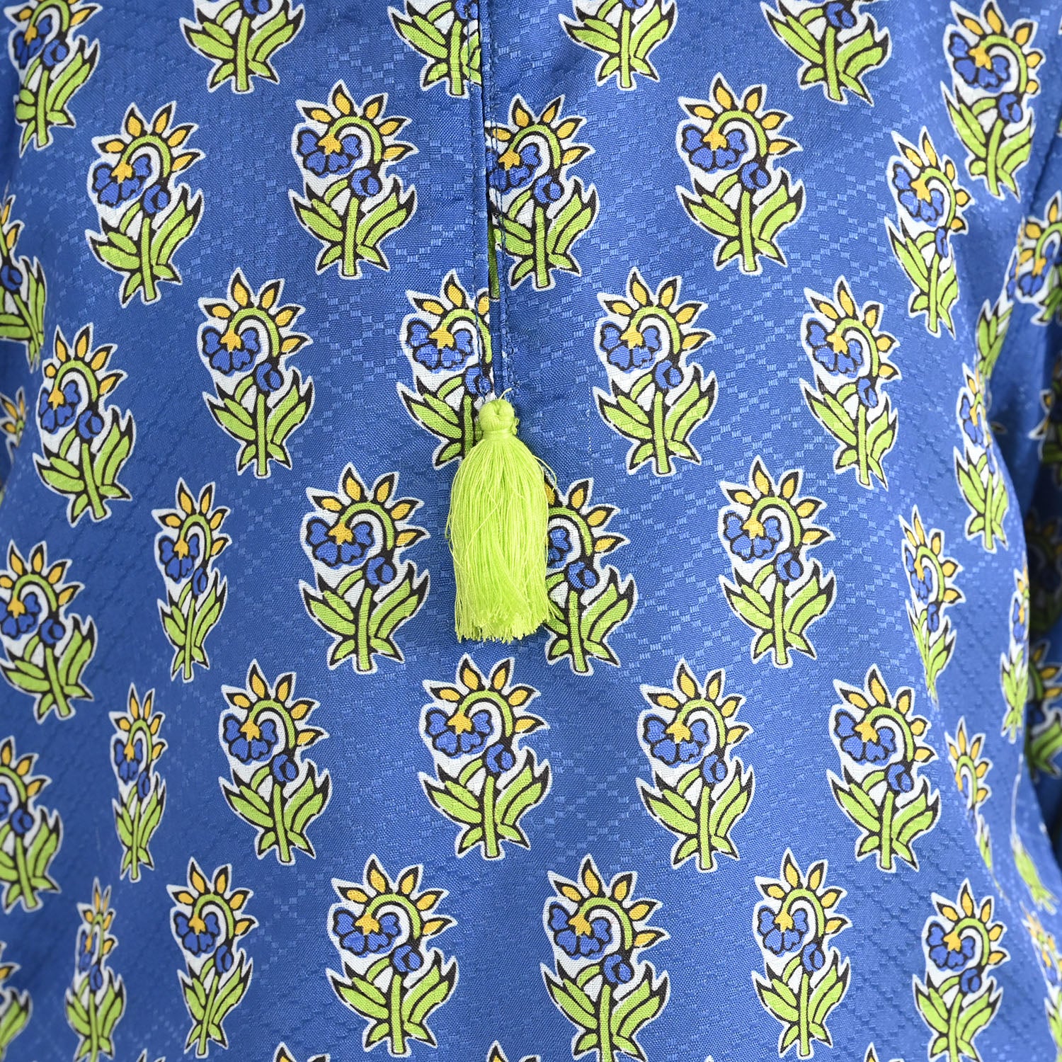Girls Jacquard Printed 2-Piece Set (Teal Flowers) - Blue