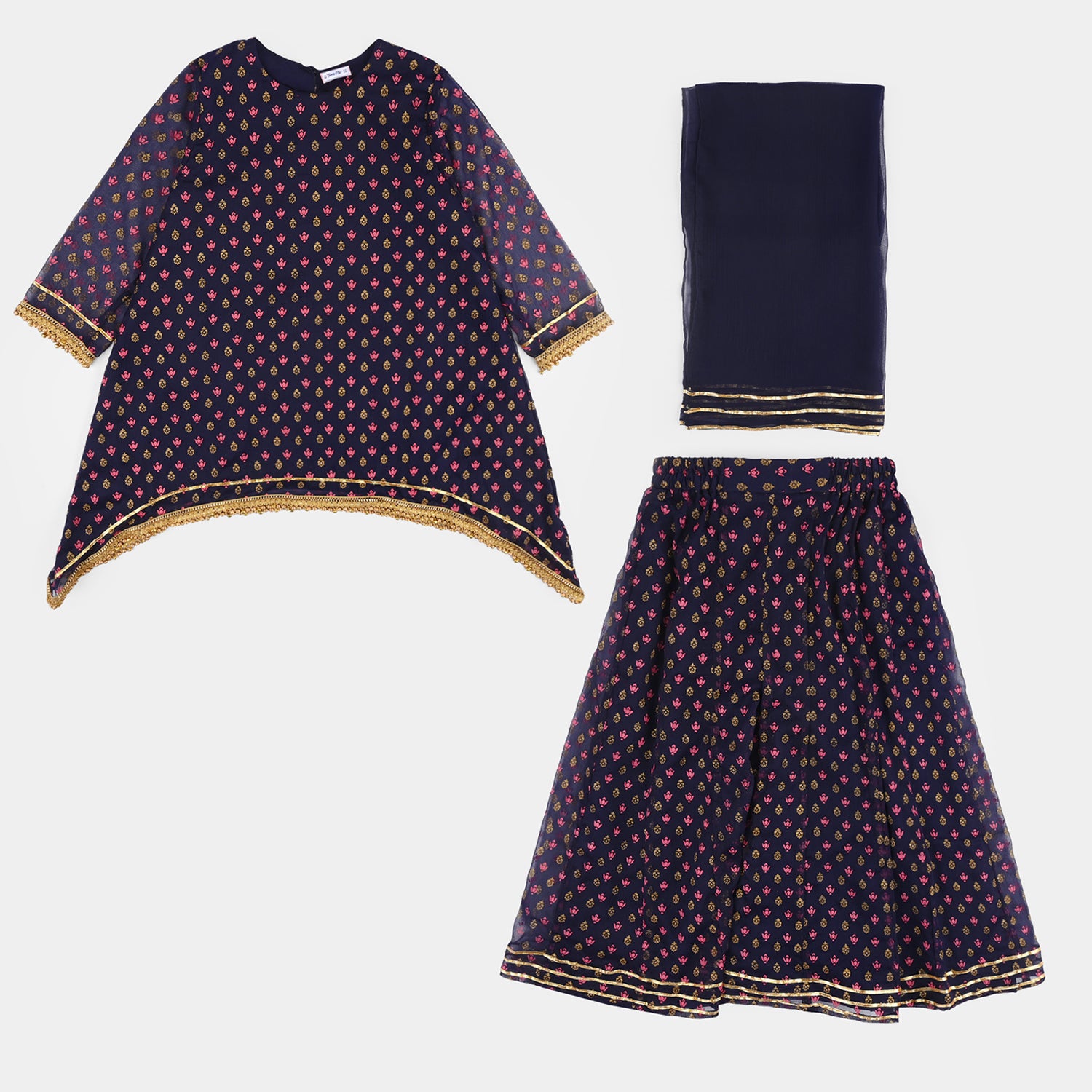 Bachaa Party brings you the best price Teens Girls Chiffon 3Pcs Reet-Purple with express shipping all over Pakistan.