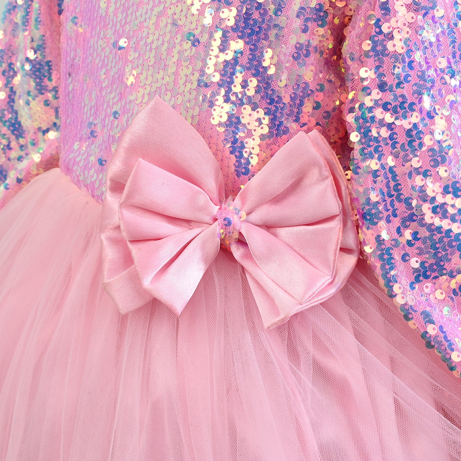 Shine like royalty! This dazzling frock is designed with a shimmering sequin bodice and a frill-trimmed hem that twirls beautifully. A show-stopper for festive occasions, it’s every little princess’s dream outfit.