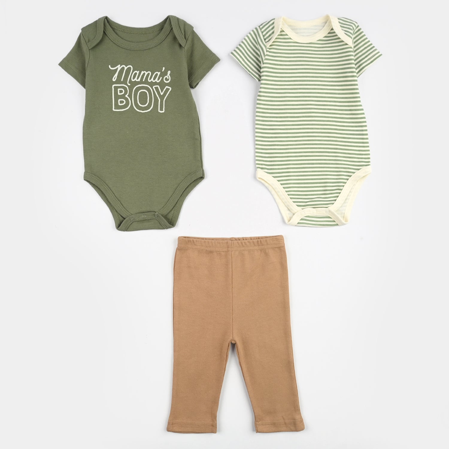 Newborn clothing starter set including 2 rompers with half sleeves, a bib, a cap, pajamas, and socks/shoes, perfect for a complete and comfortable everyday outfit for your little one.