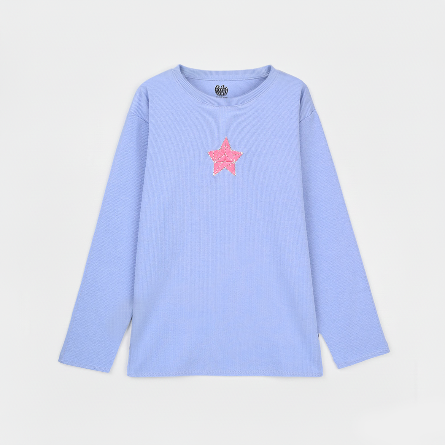 Girls blue basic sweatshirt featuring full sleeves and star embellishments, perfect for pairing or layering with any outfit.