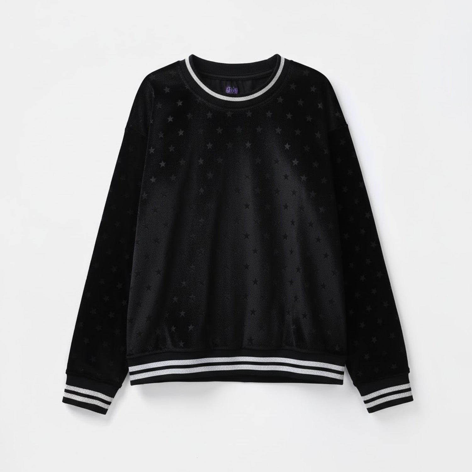 This girls black velour sweatshirt features a round neck, full sleeves, and a star print, perfect to pair with any bottoms or pants.