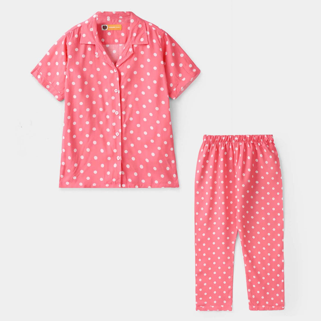 Girls Viscose Woven Night Suit-Multi Polka - Multi