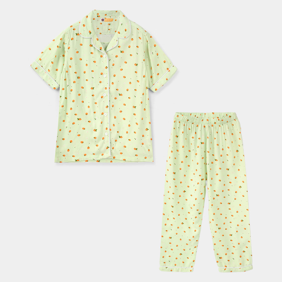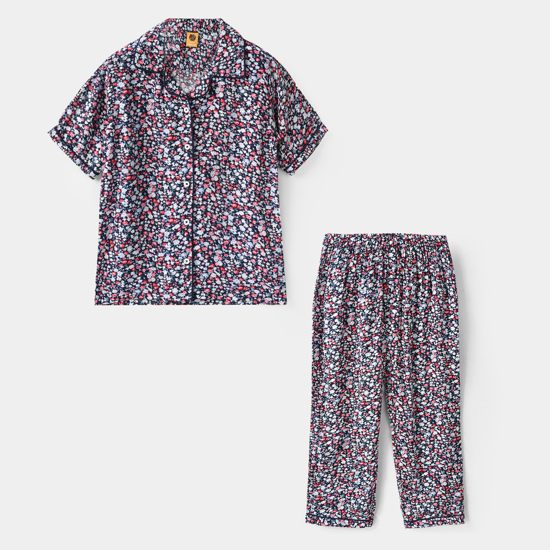 Girls Viscose Nightwear Suit Printed Stitch-Multi