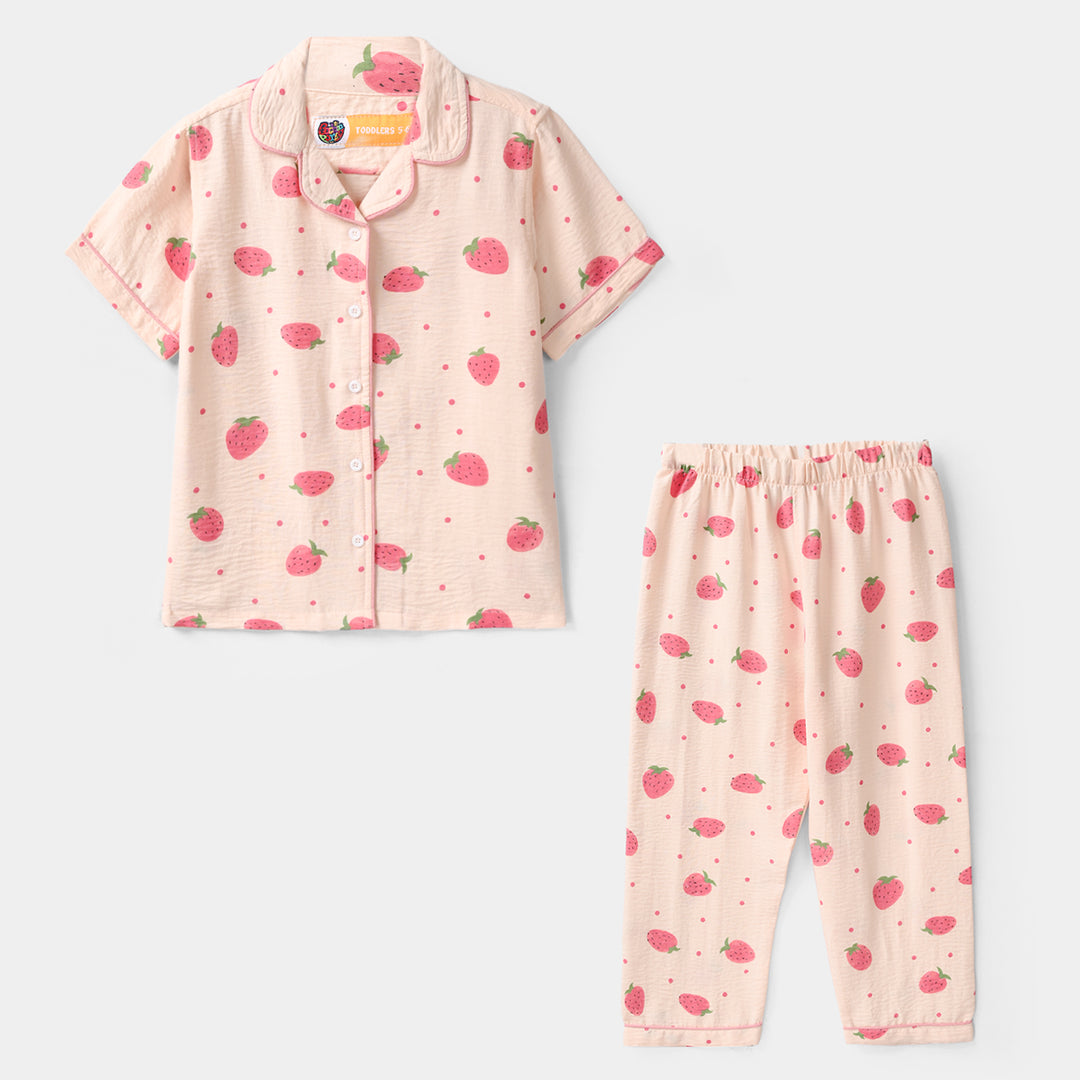 Girls Poly Cotton Jersey Night Suit -Candy Pink