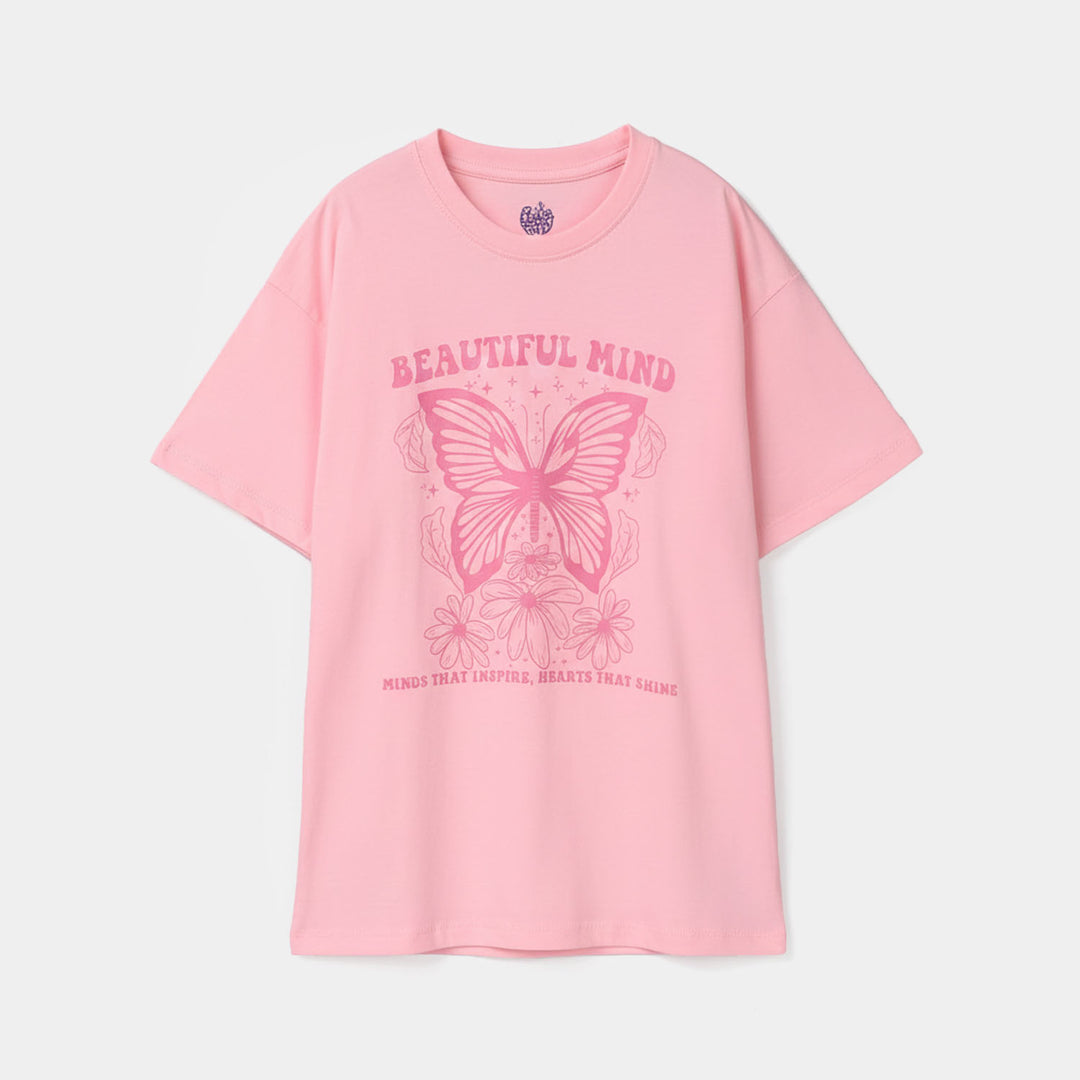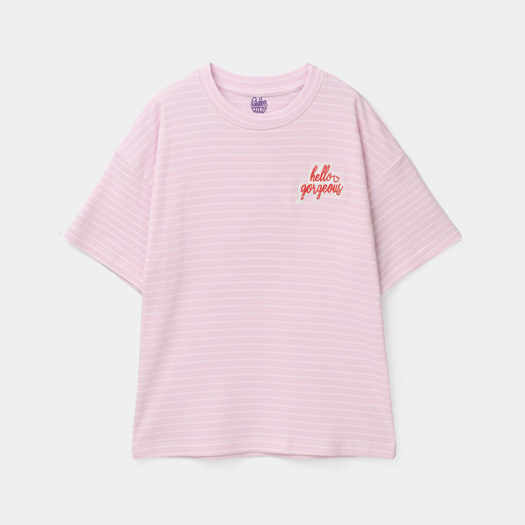 Girls Lycra Jersey T-Shirt F/S Pink Heart-Pink