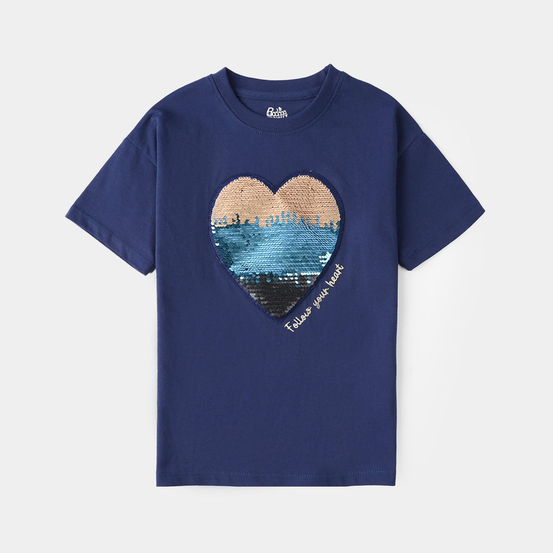 Girls Cotton Jersey T-Shirt F/S Shine-Navy Blue