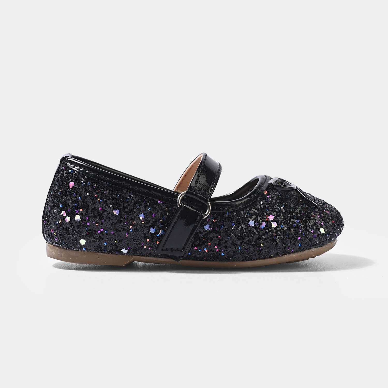 Girls pump heels featuring a charming glittery finish and a cute front bow, designed with soft, comfortable heels for all-day wear.