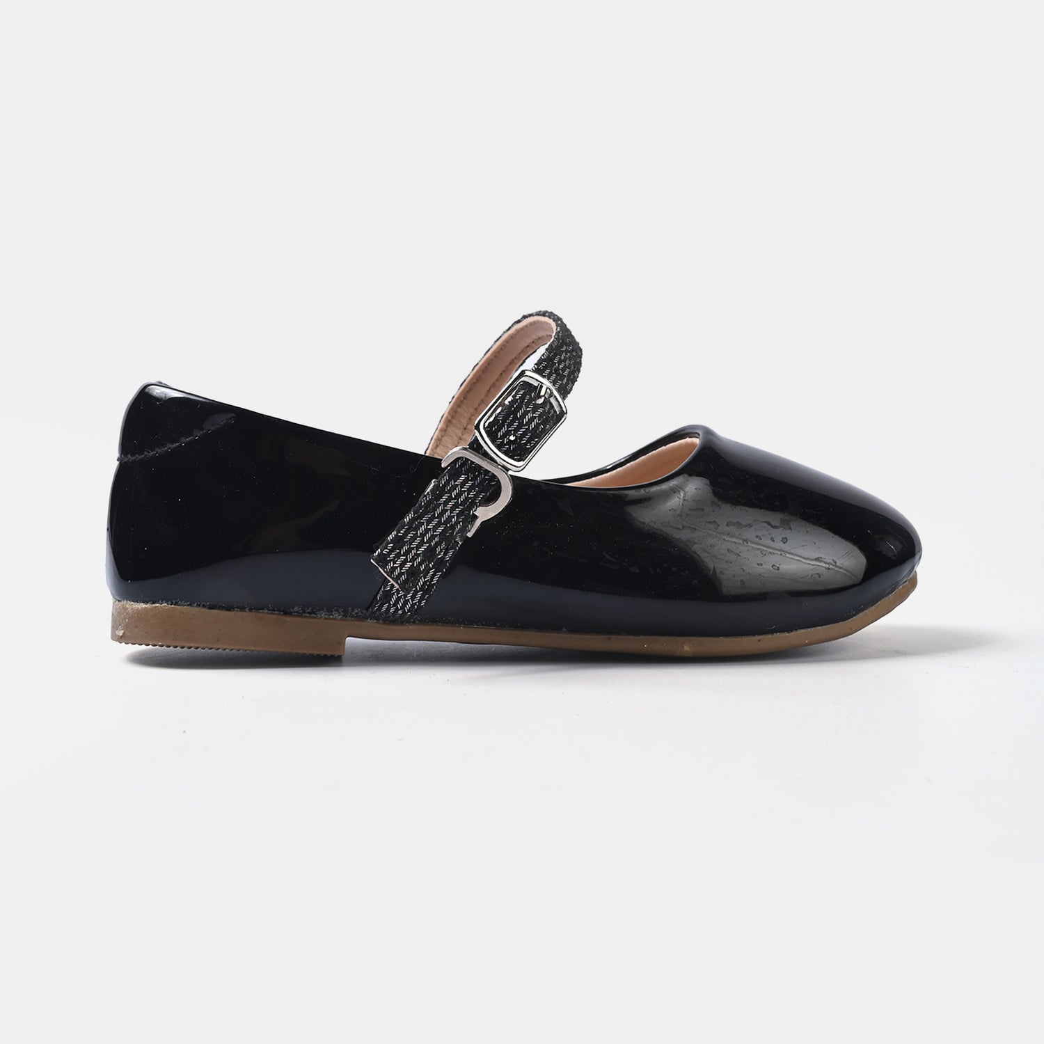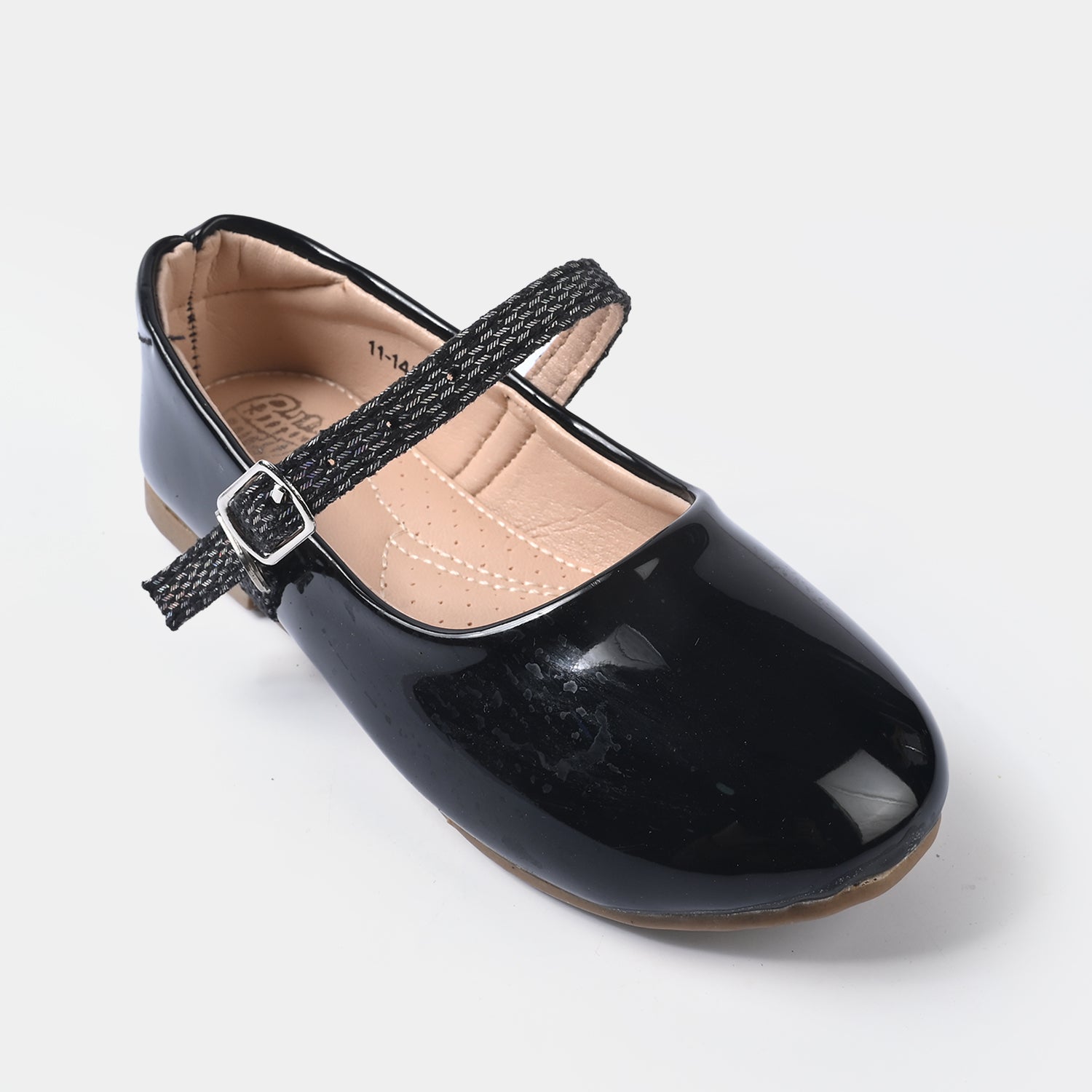 Girls' plain black pumps featuring a buckle strap closure, perfect for a stylish and comfortable everyday or party look.