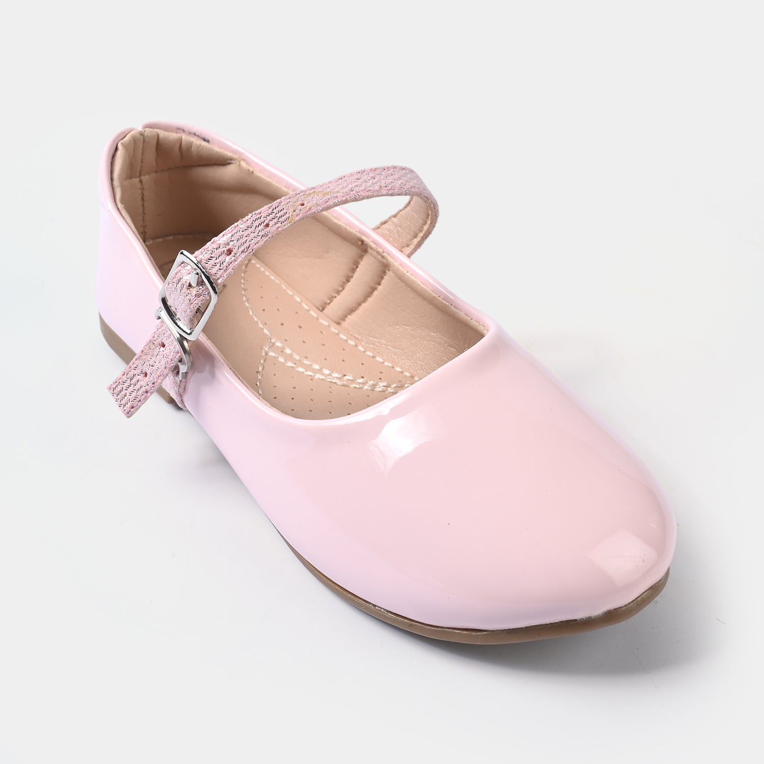 Girls' plain pink pumps featuring a buckle strap closure, perfect for a stylish and comfortable everyday or party look.