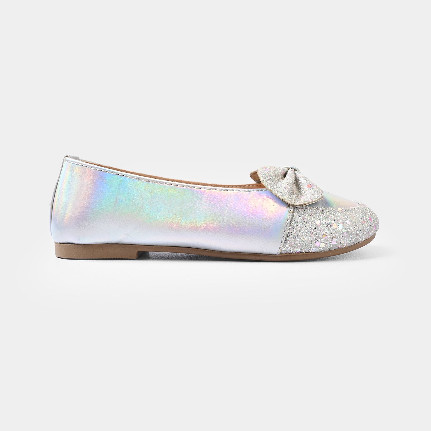 Girls Silver Pumps featuring a cute bow embellishment and glittery finish, perfect for layering with both eastern and western outfits.