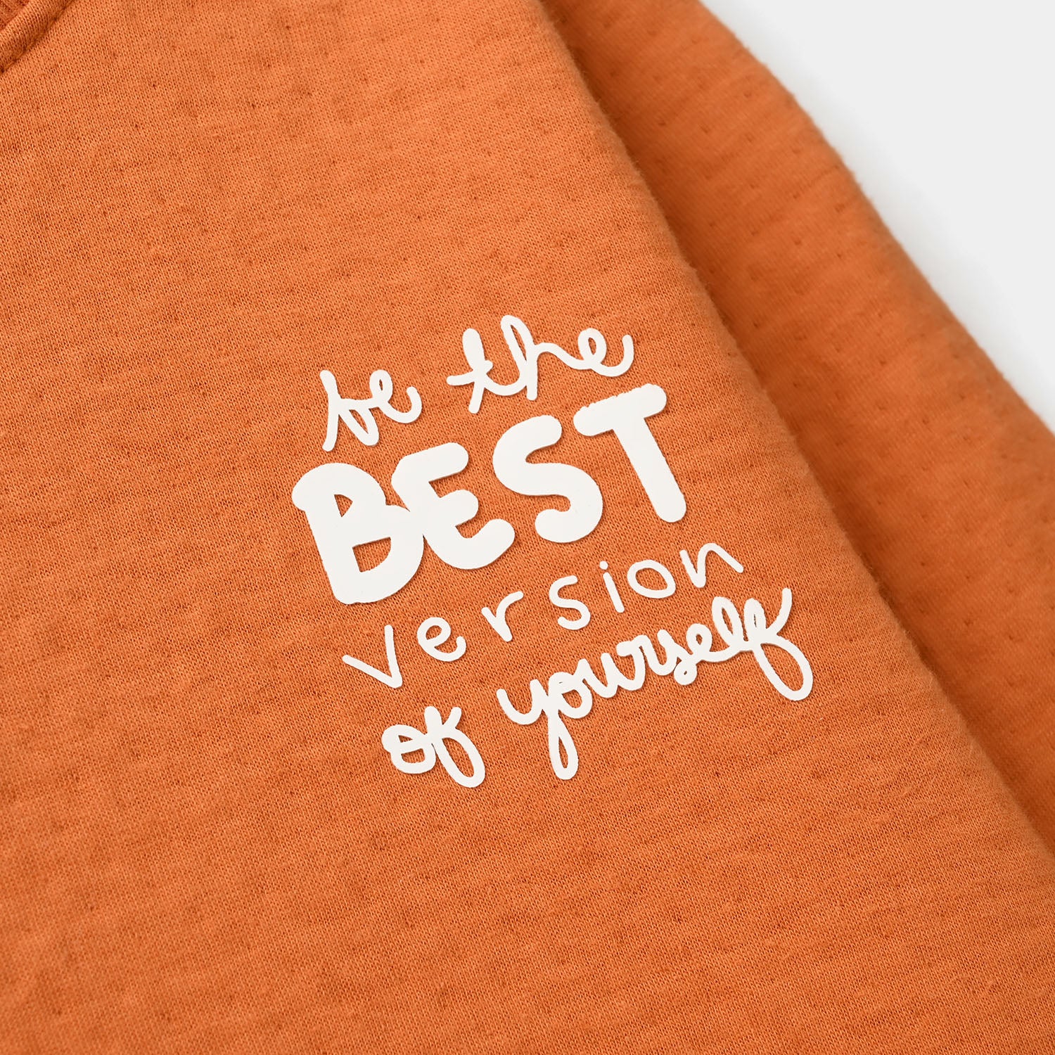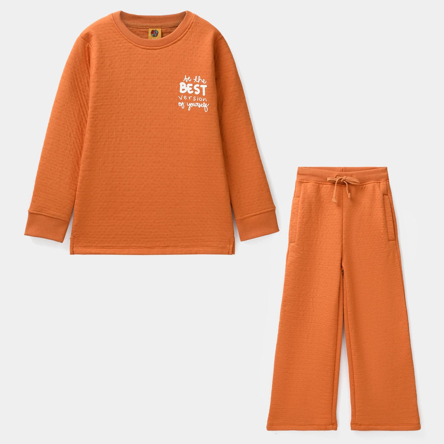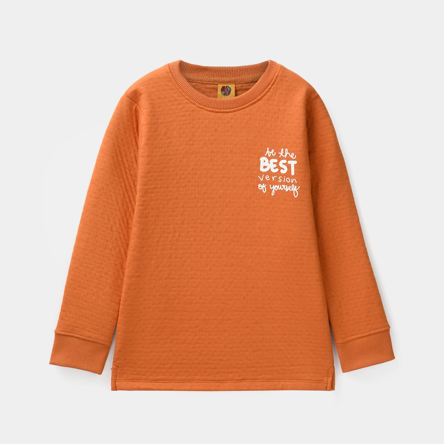 Girls brown 2-piece quilted set features a round-neck, full-sleeve shirt with matching straight-fit bottoms. Perfect for a coordinated and comfortable look.