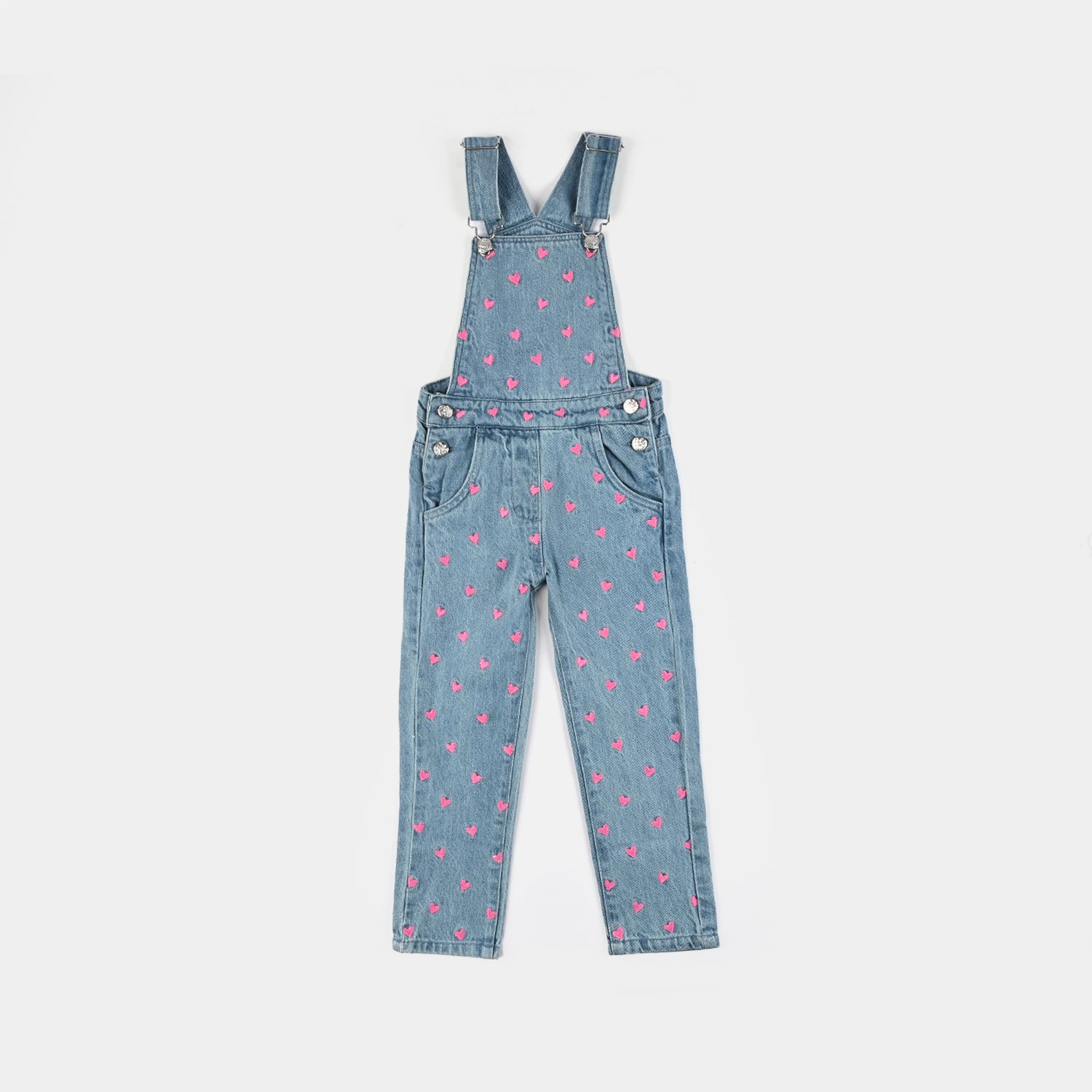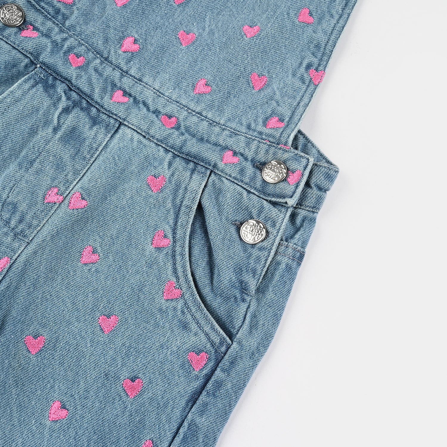 Bachaa Party brings you the best price Girls Denim Stretch Dangri Hearts-BLUE with express shipping all over Pakistan.