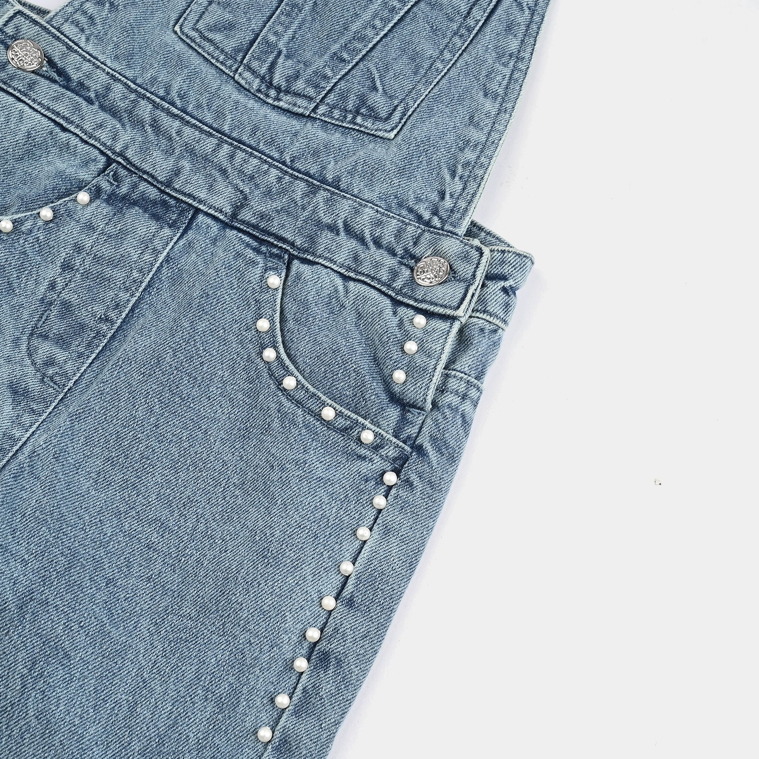 Bachaa Party brings you the best price Girls Denim Stretch Dangri Pearls-Light Blue with express shipping all over Pakistan.