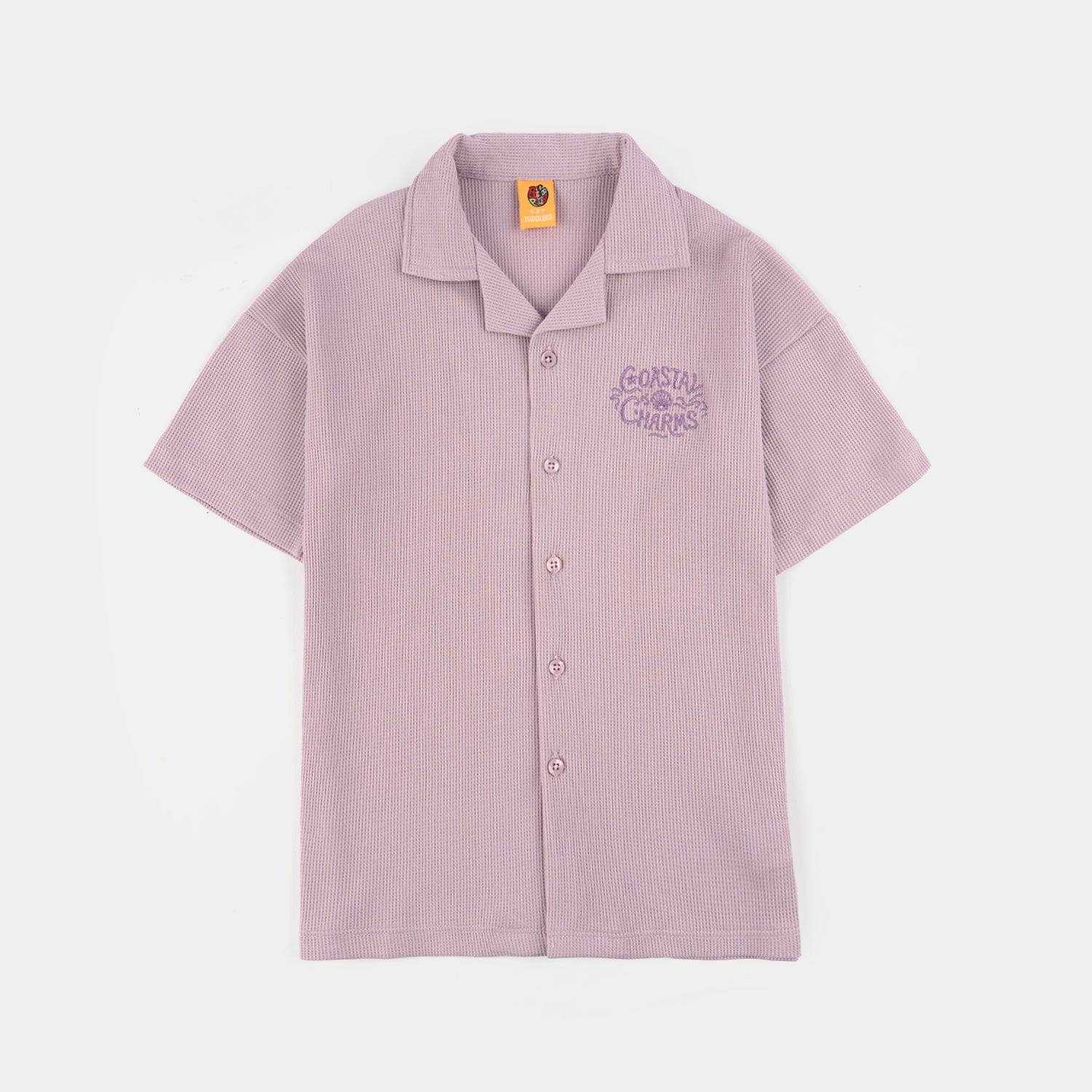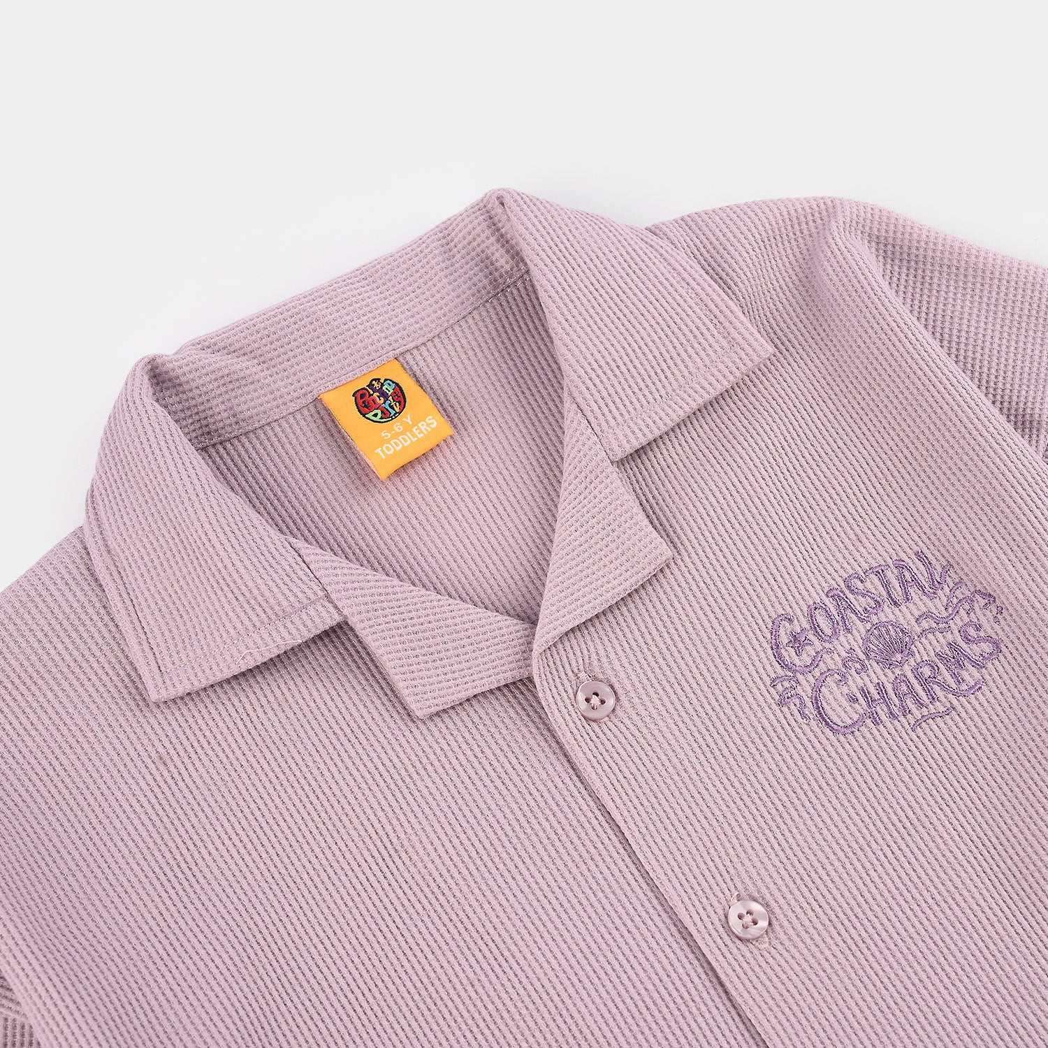 Girls' thermal 2-piece suit in purple featuring a soft fabric with a half-sleeved, front-open top and loose pants, perfect for a cozy and comfortable everyday look.