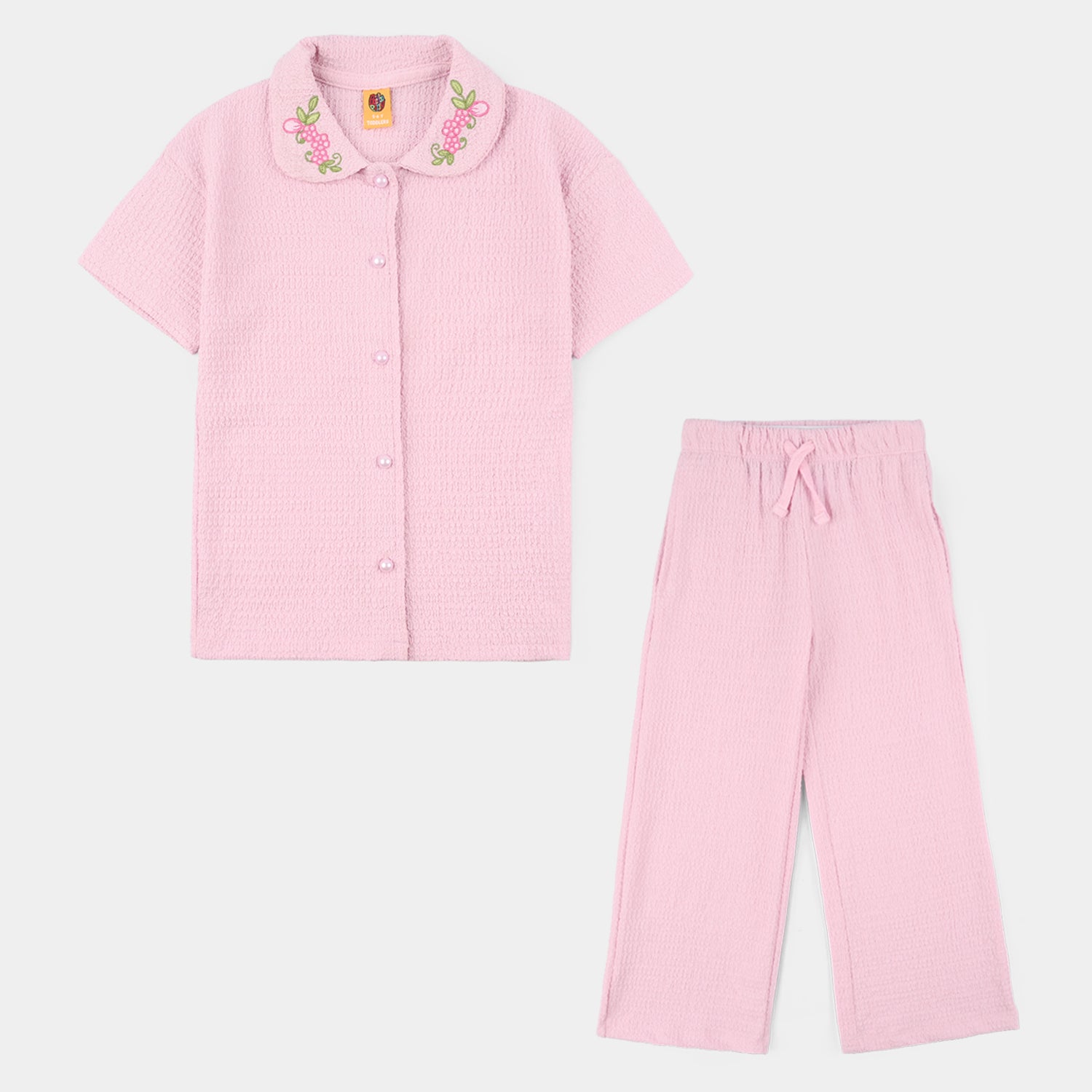 Bachaa Party brings you the best price Girls China Fabric Suit 'Floral Collar-PINK with express shipping all over Pakistan.