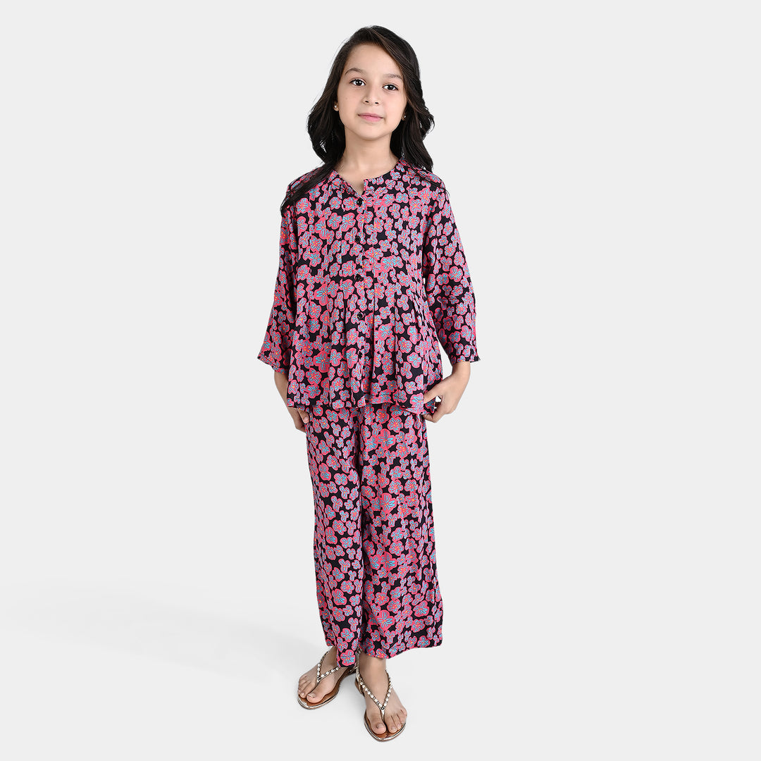 Girls Poly Cambric Printed 2Pcs Suit Floral-Multi