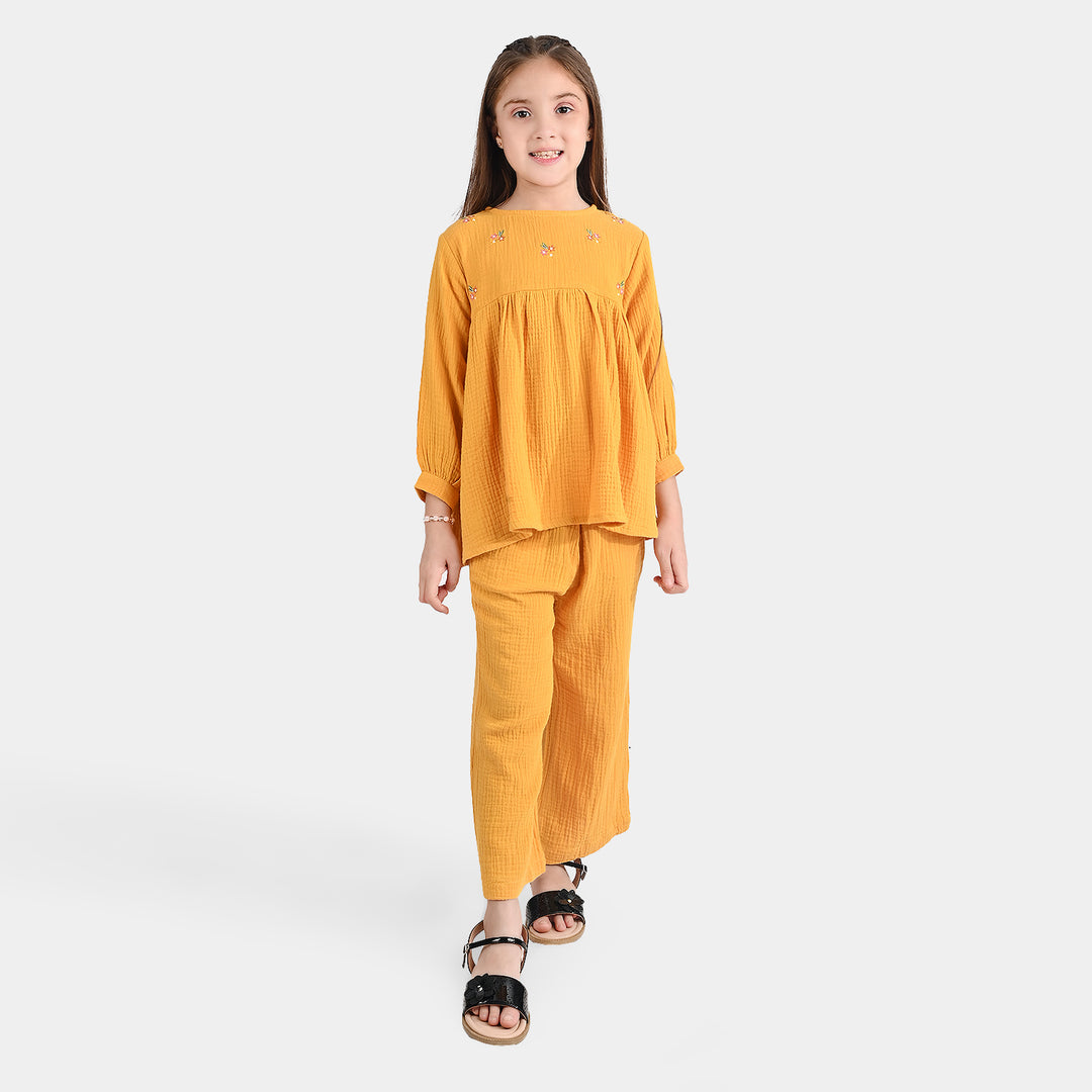 Girls Poly Cotton Jumpsuit Resort Collar-Mustard