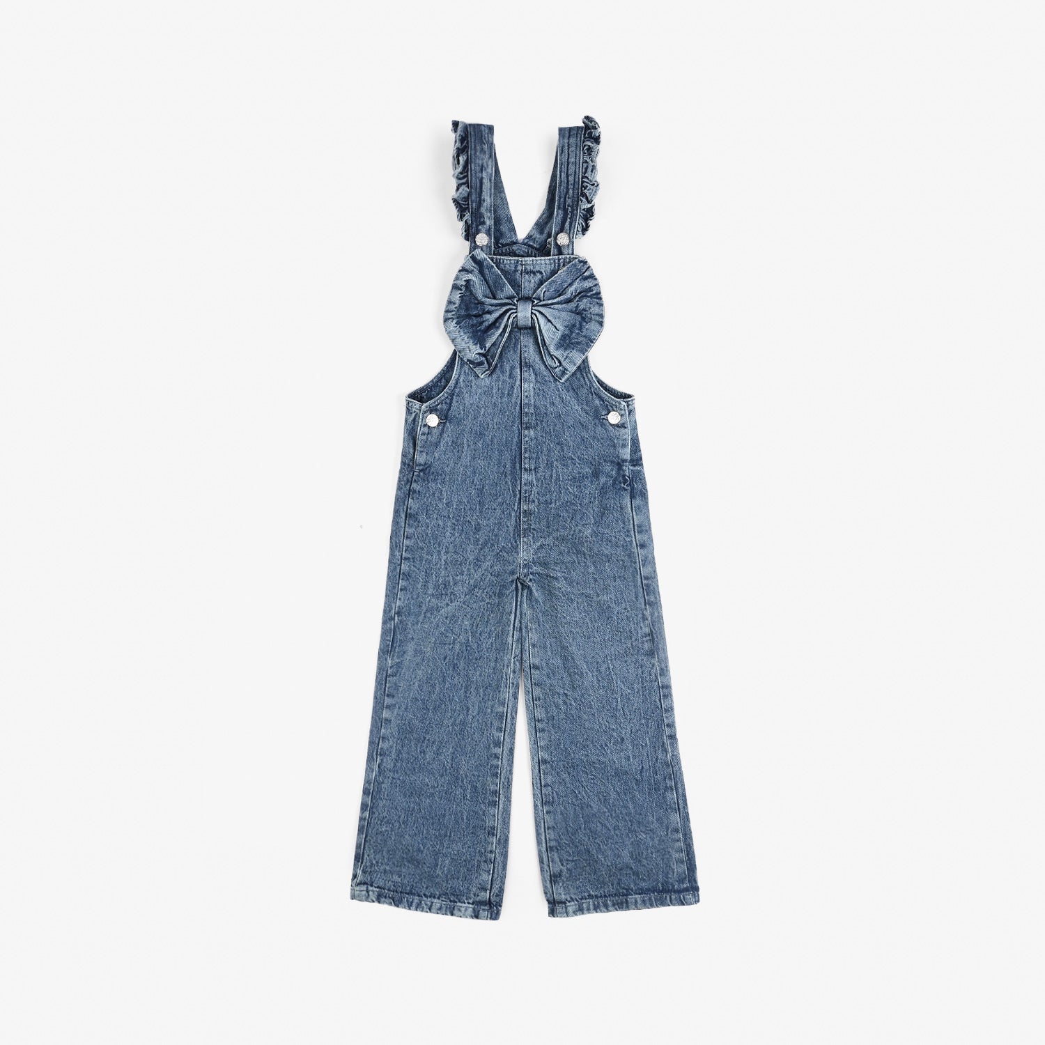 Bachaa Party brings you the best price Girls Denim Stretch Dangri Bow-Mid Blue with express shipping all over Pakistan.