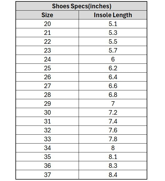 For Shoes: Please allow 0.2 inch +/- tolerance due to manual measurement.