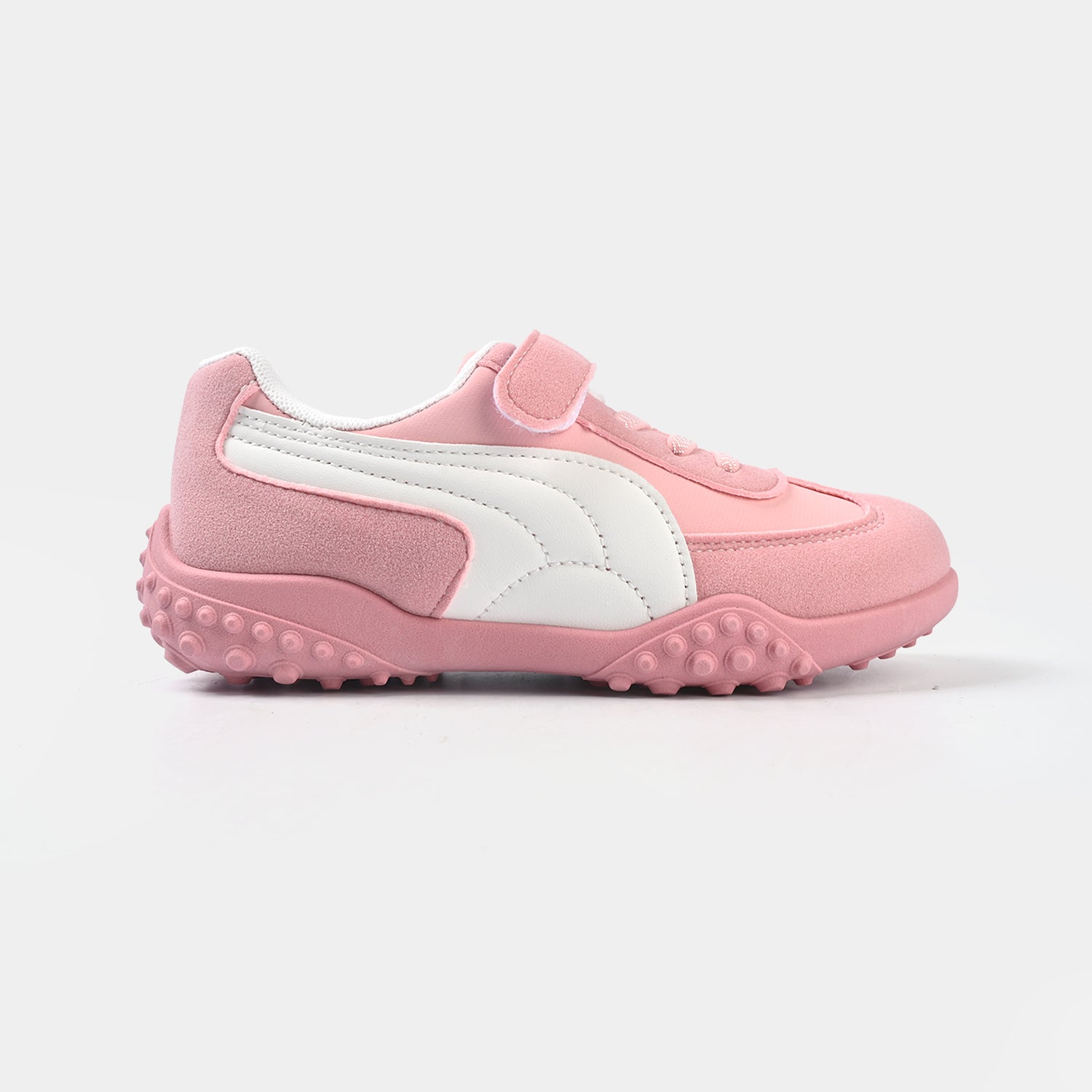 Girls’ sneakers in pink featuring laces and a secure strap, perfect for a stylish and comfortable everyday look.
