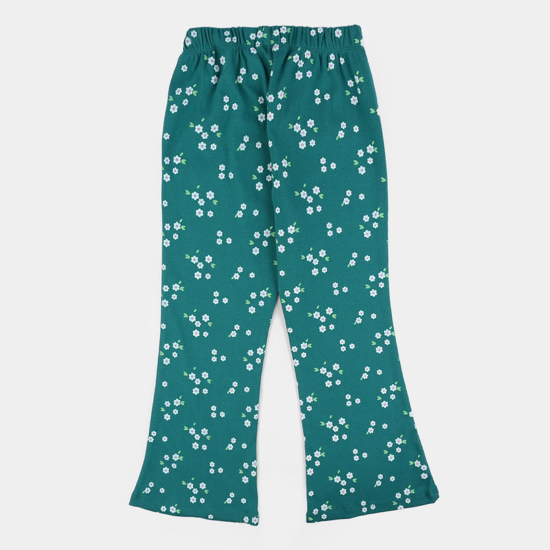 Girls Lycra Jersey Tights Printed Multi Flowers-Yellow