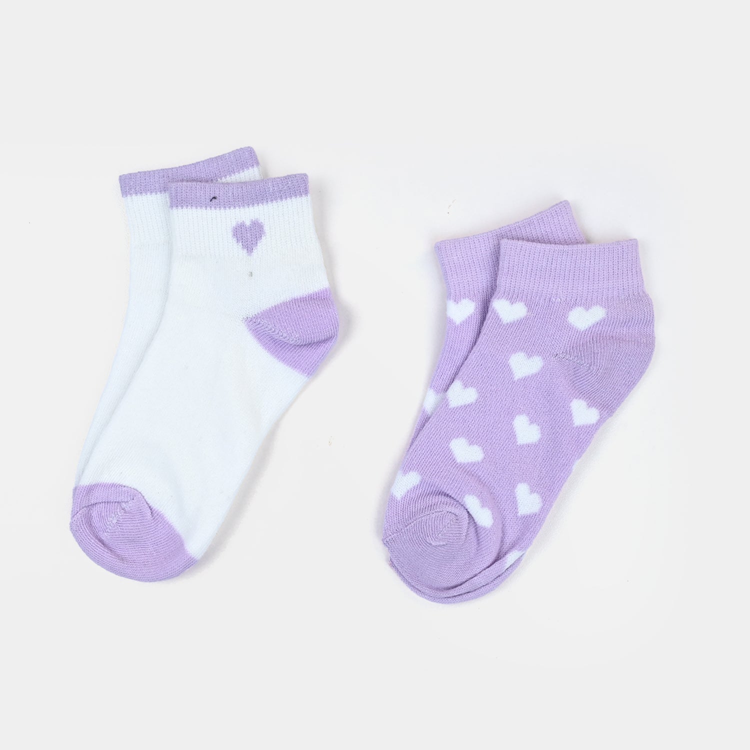 Girls Cotton Socks Pack of 2 in Lilac features a soft cotton fabric with heart prints for a cute everyday look.