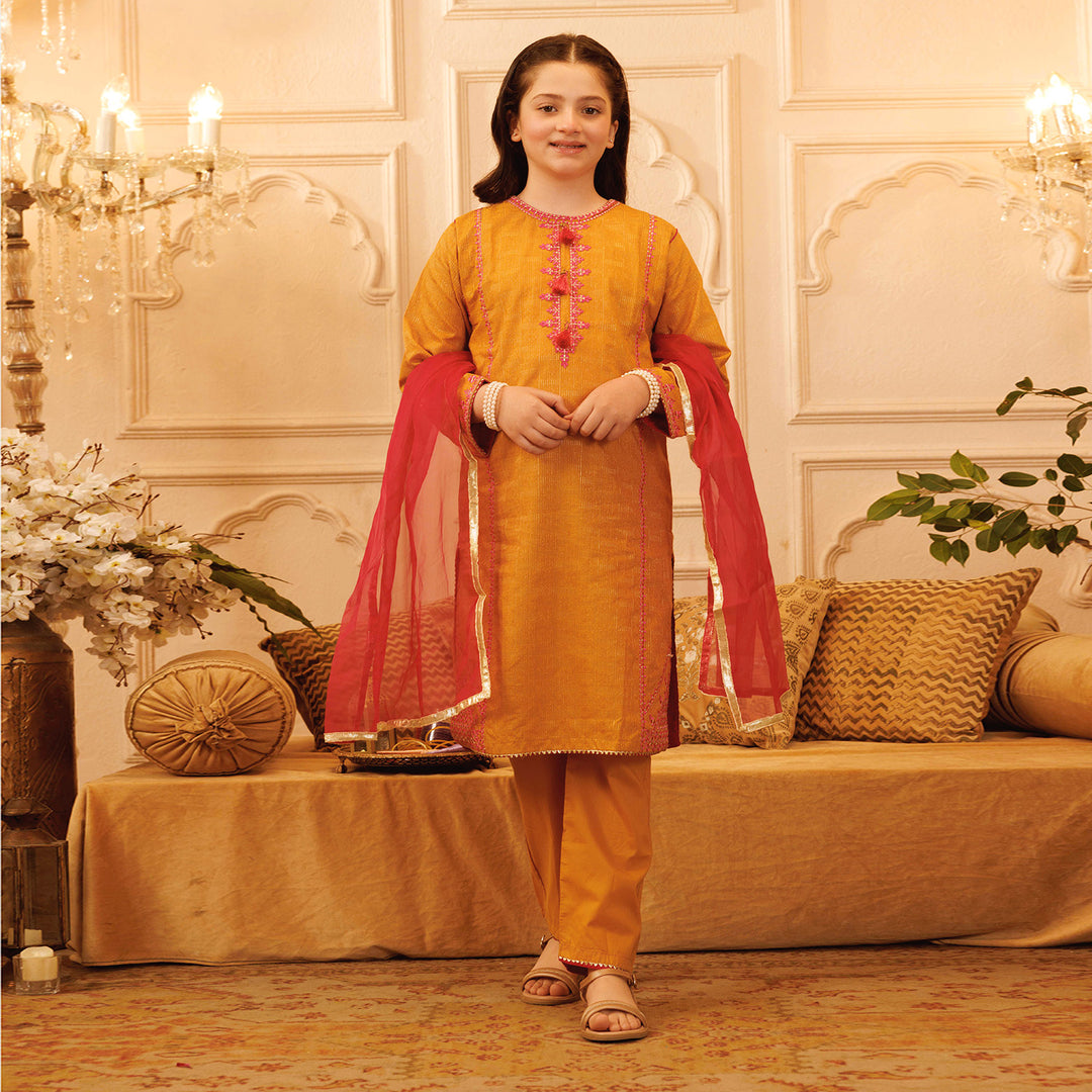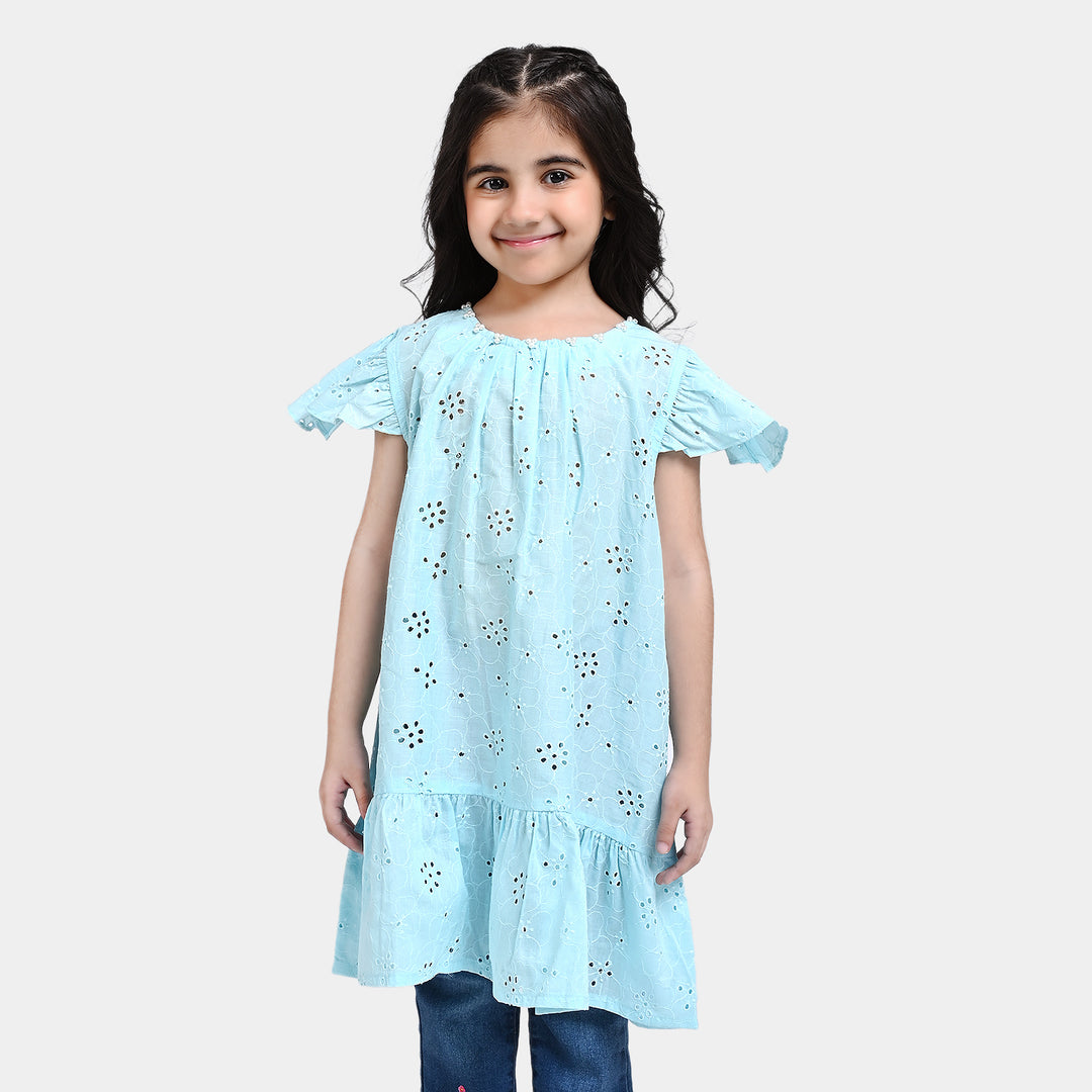 Girls Jacquard EMB Kurti Summer Vibes-SKY BLUE