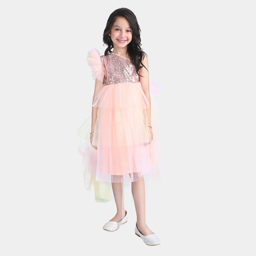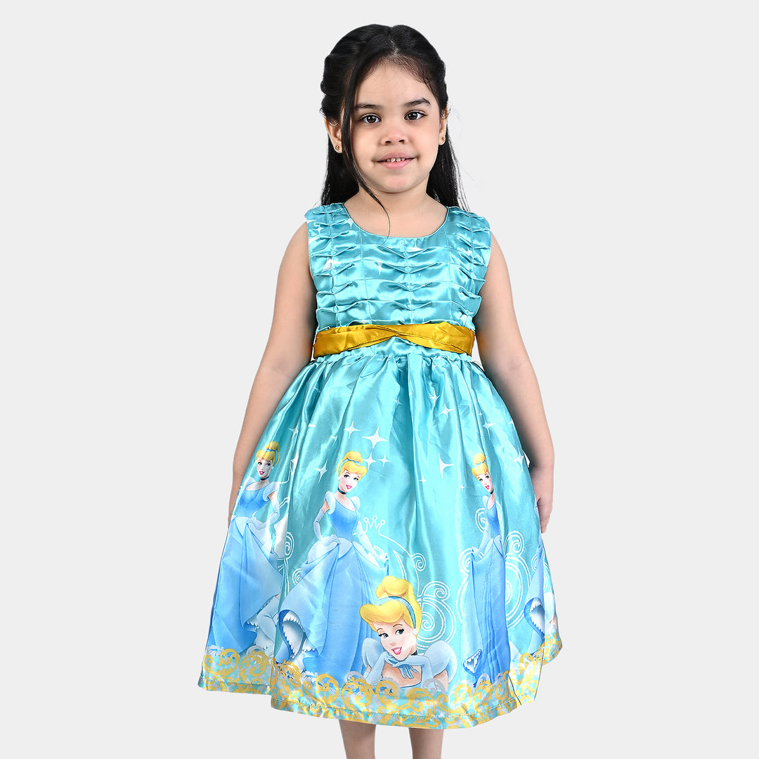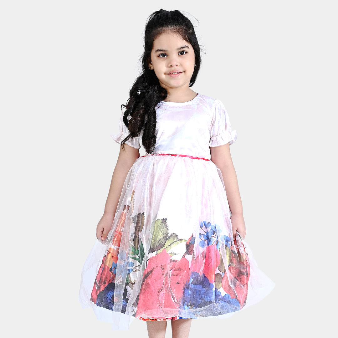 Girls Net Fancy Frock Fresh Flower-Sea Green