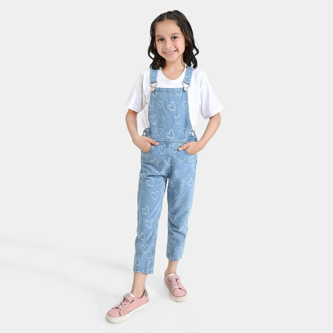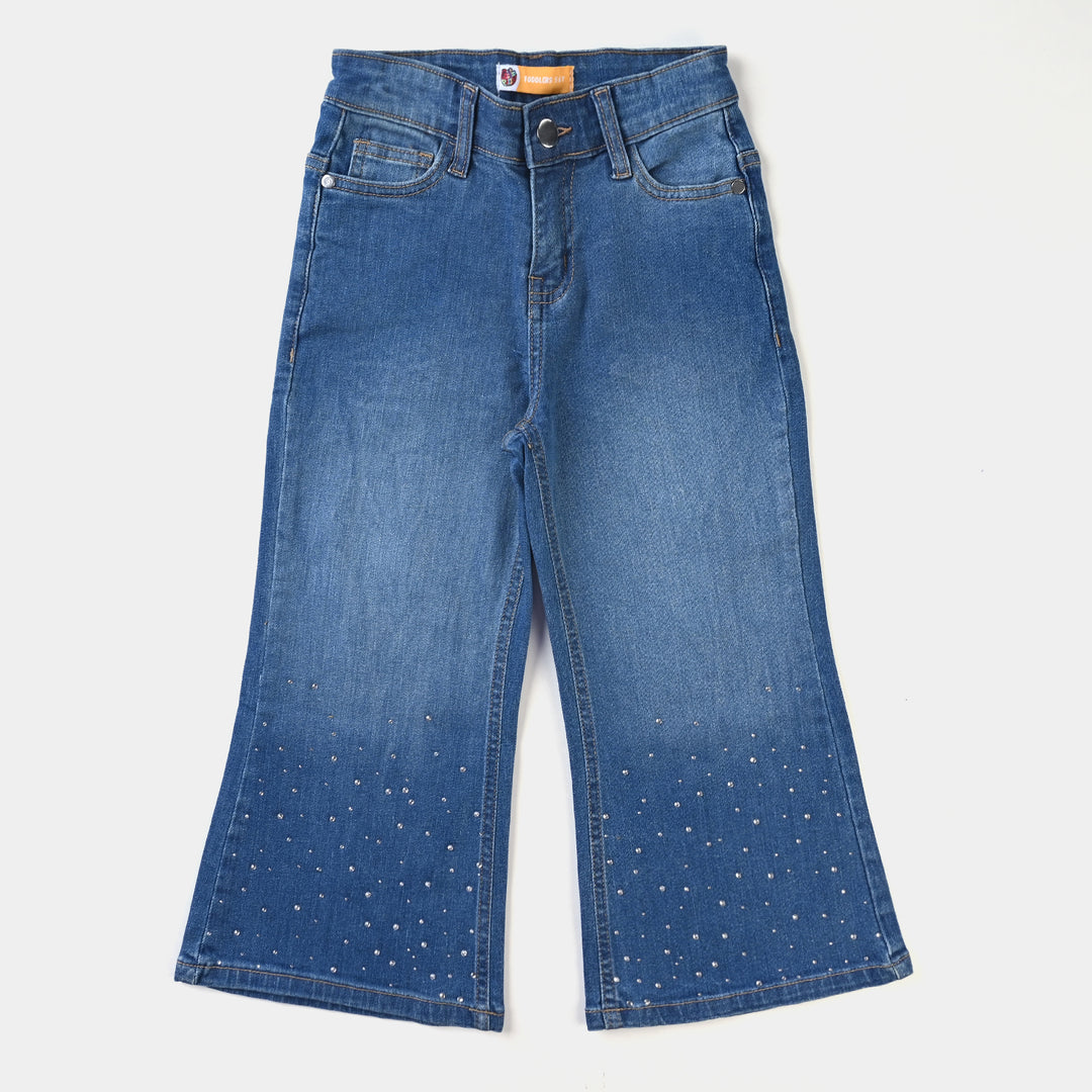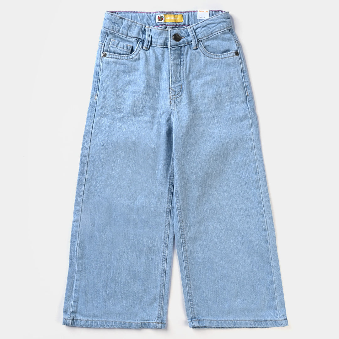 Girls Denim rigid Dangri Stars EMB-LIGHT BLUE