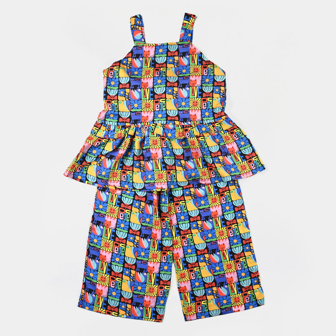 Girls Cotton Viscose Pant Colorful Floral-BLACK