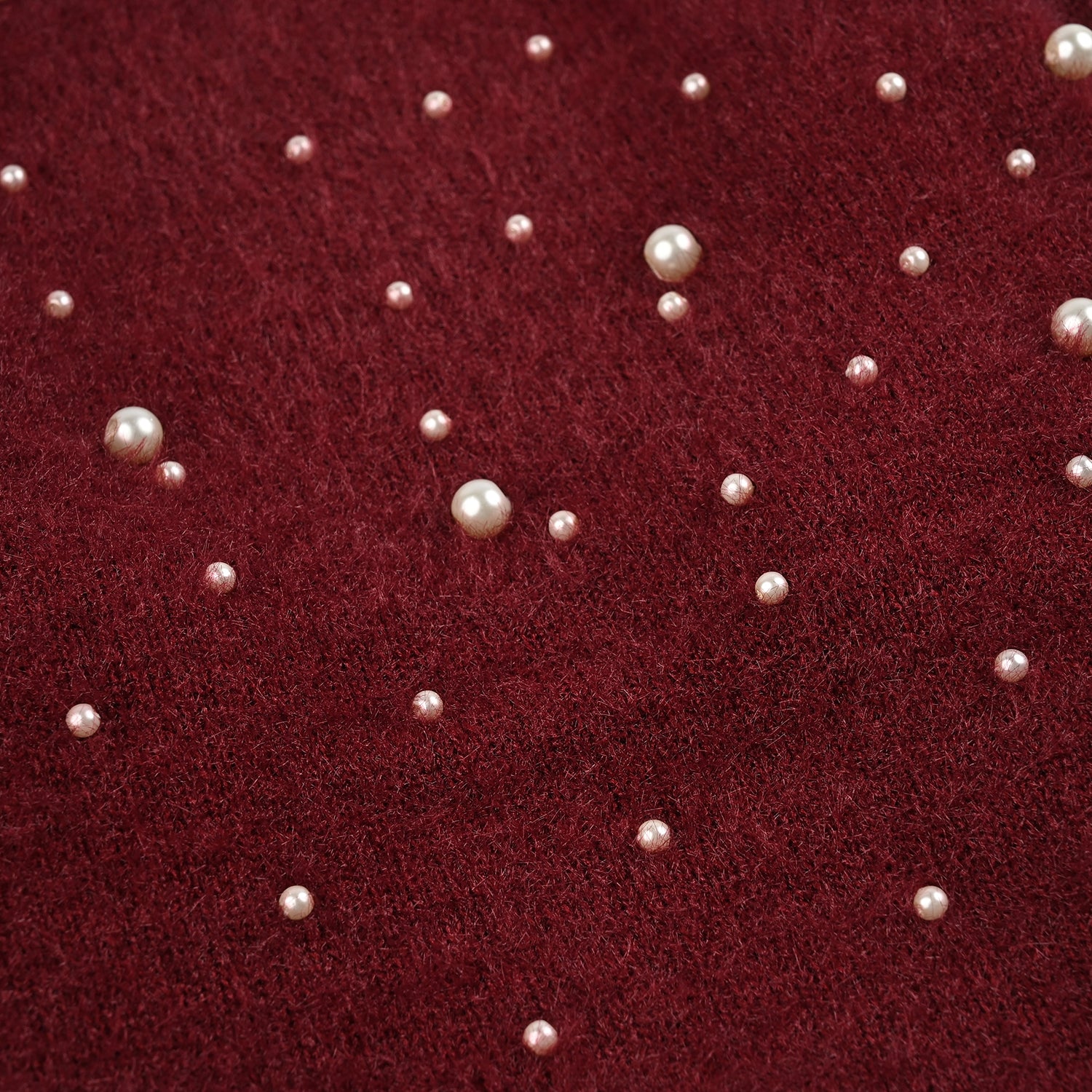 This sweater is crafted from soft feather yarn fabric and features delicate pearl accents. The round neck design ensures a cozy fit, perfect for layering in cooler weather, while its elegant yet casual look makes it an excellent choice for everyday wear.