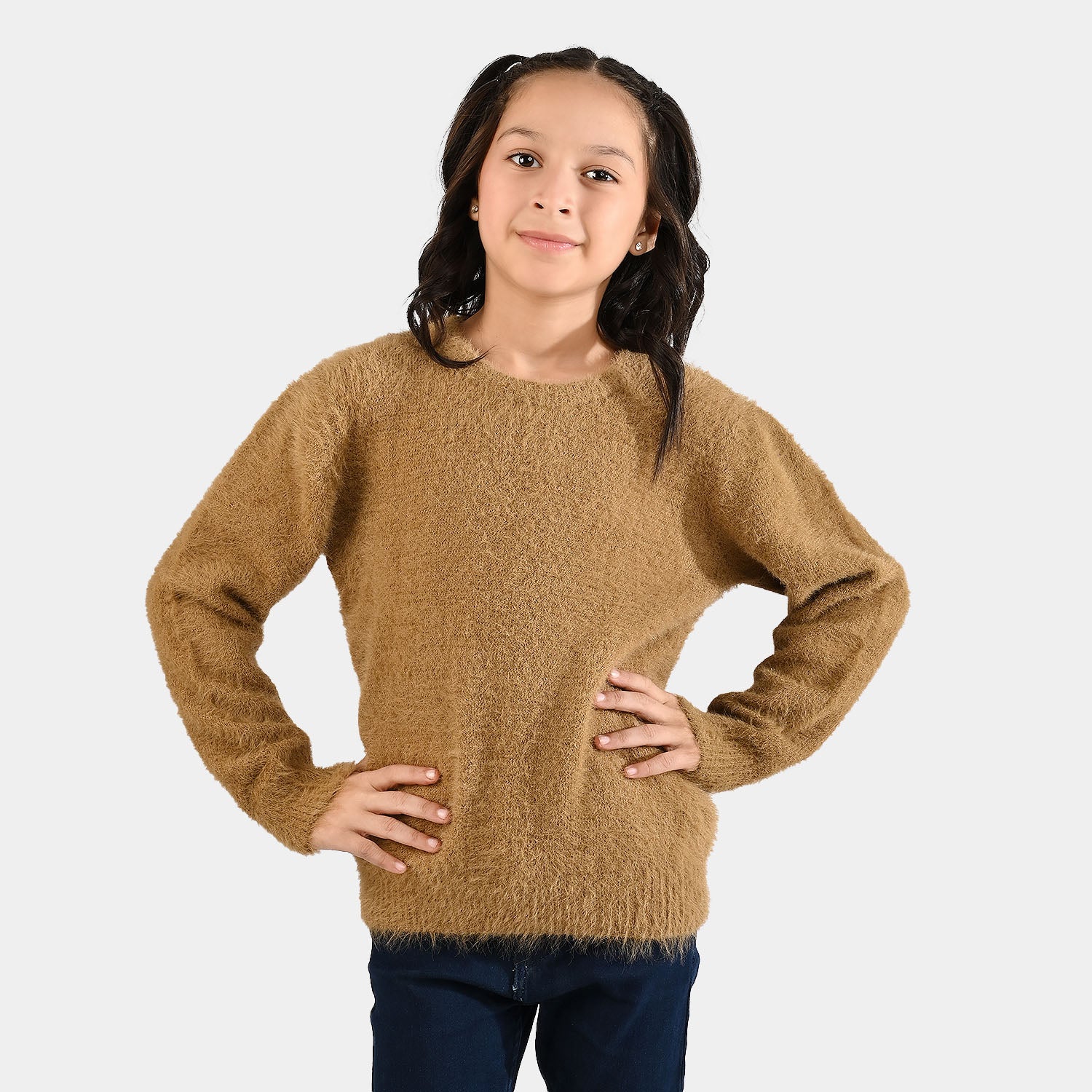 This girl's Sweater features a comfortable round neck and full sleeves, providing a cozy fit ideal for daily wear. Its soft, feather-yarn fabric ensures easy layering while delivering a casual yet stylish look, making it a practical choice for everyday comfort and style.