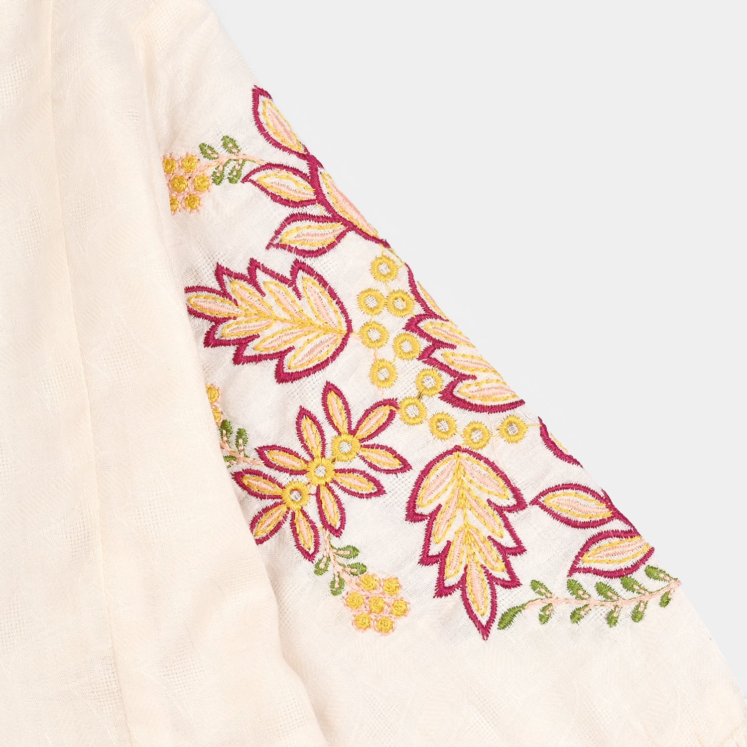 This Girls Jacquard Embroidered Top features premium jacquard fabric adorned with intricate embroidery and smoked sleeves, creating a polished silhouette. The peplum cut ensures a comfortable, flattering fit. Suitable for formal occasions or everyday use, it brings a timeless elegance to your child’s wardrobe.