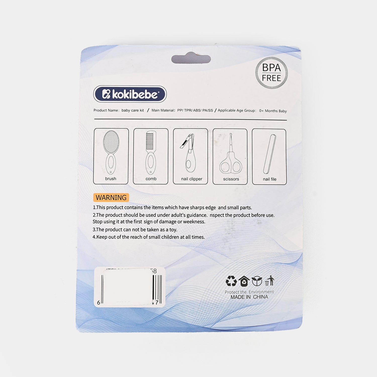 Complete baby grooming kit with a hairbrush, comb, nail cutter, scissors, and filer, designed for gentle and safe daily care. Perfect for keeping your little one neat and comfortable.