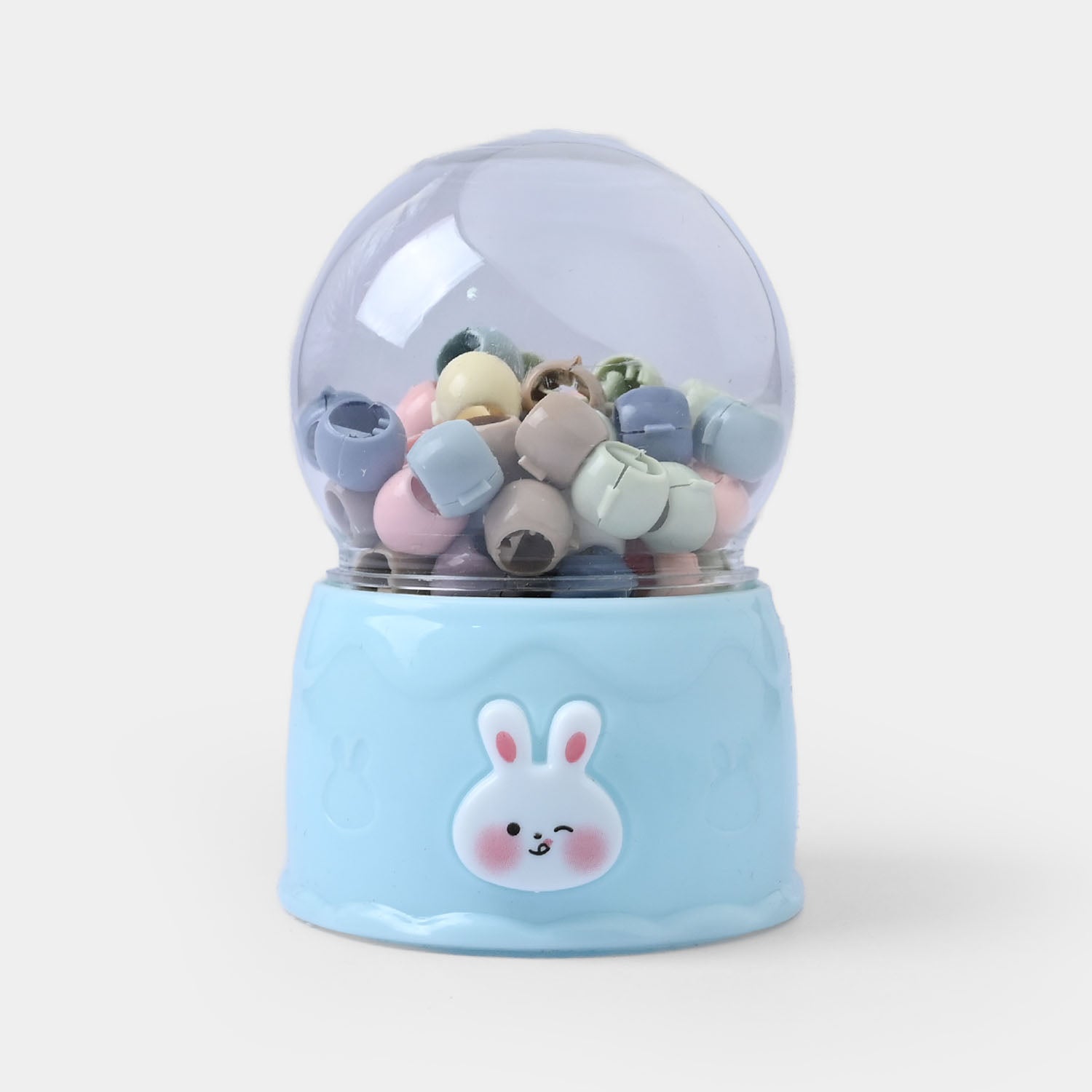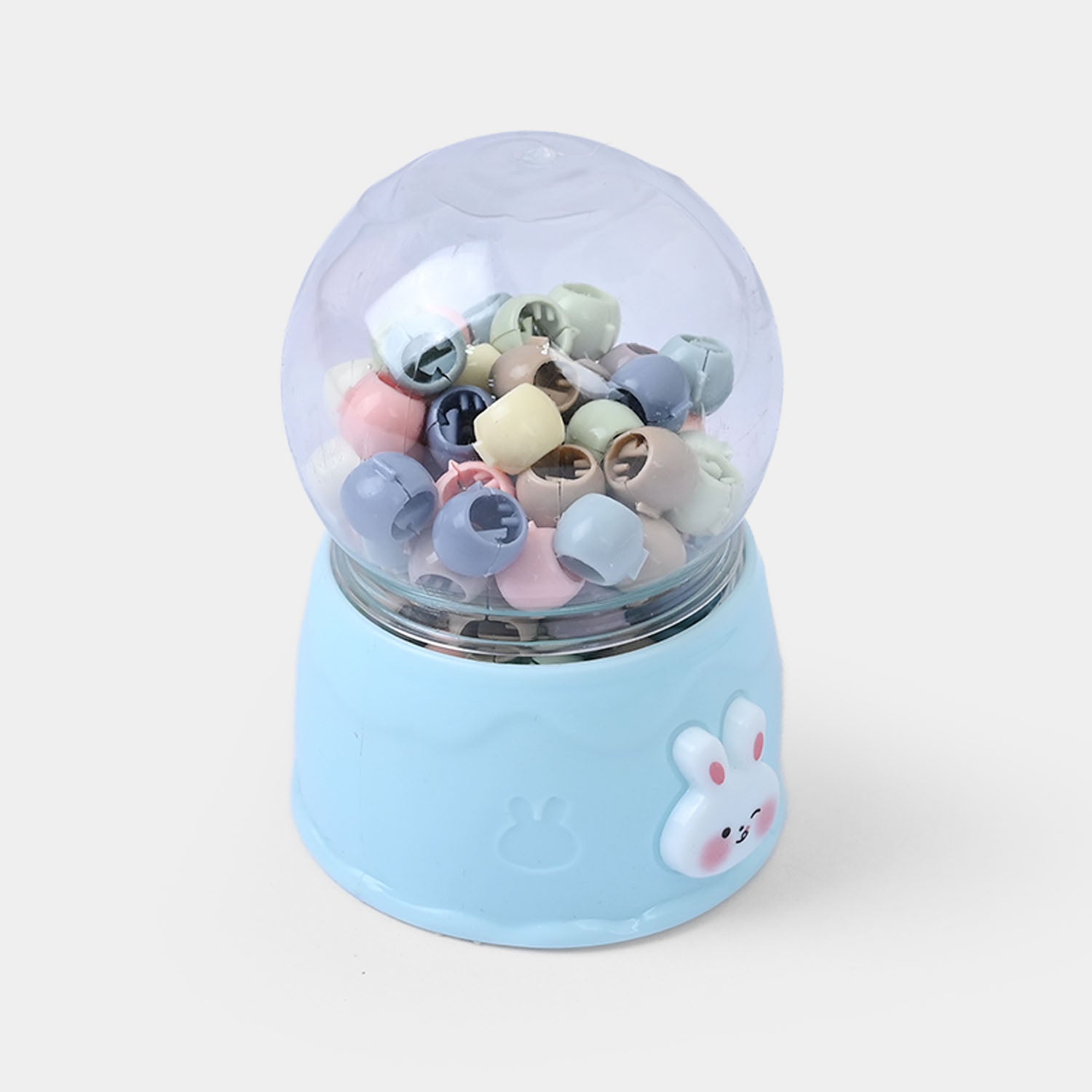 Colorful mini claw clips in a convenient dispenser. Perfect for kids' hairstyling with easy storage and quick access.