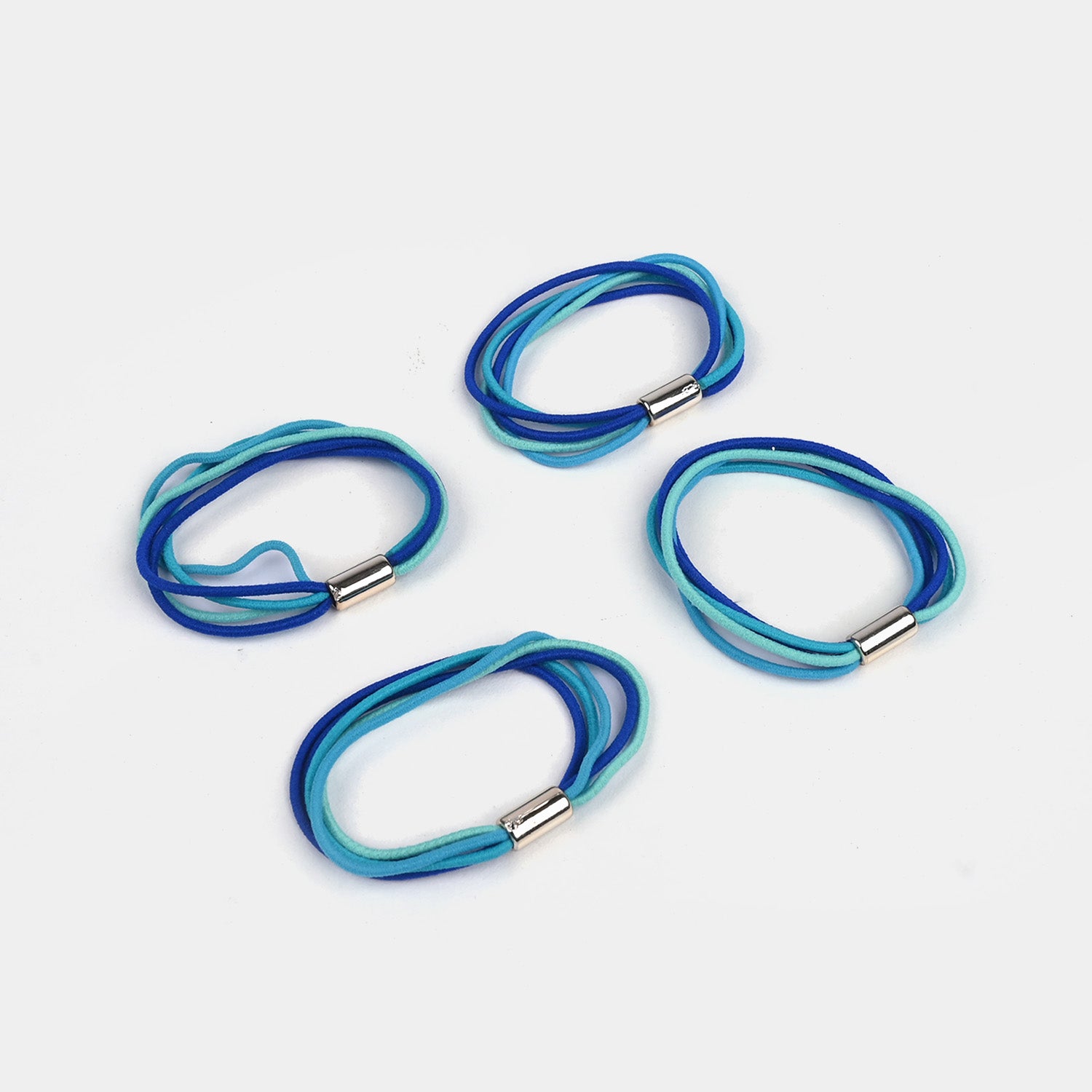 This pack of 4 Blue girls hair ties is gentle on hair, perfect for everyday hairstyles, and provides all-day comfortable wear.