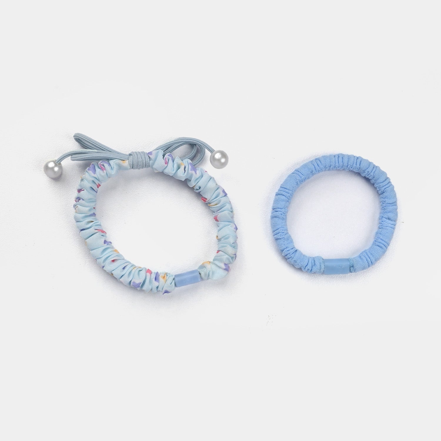 This pack of 2 blue girls hair ties is gentle on hair, perfect for everyday hairstyles, and provides all-day comfortable wear.