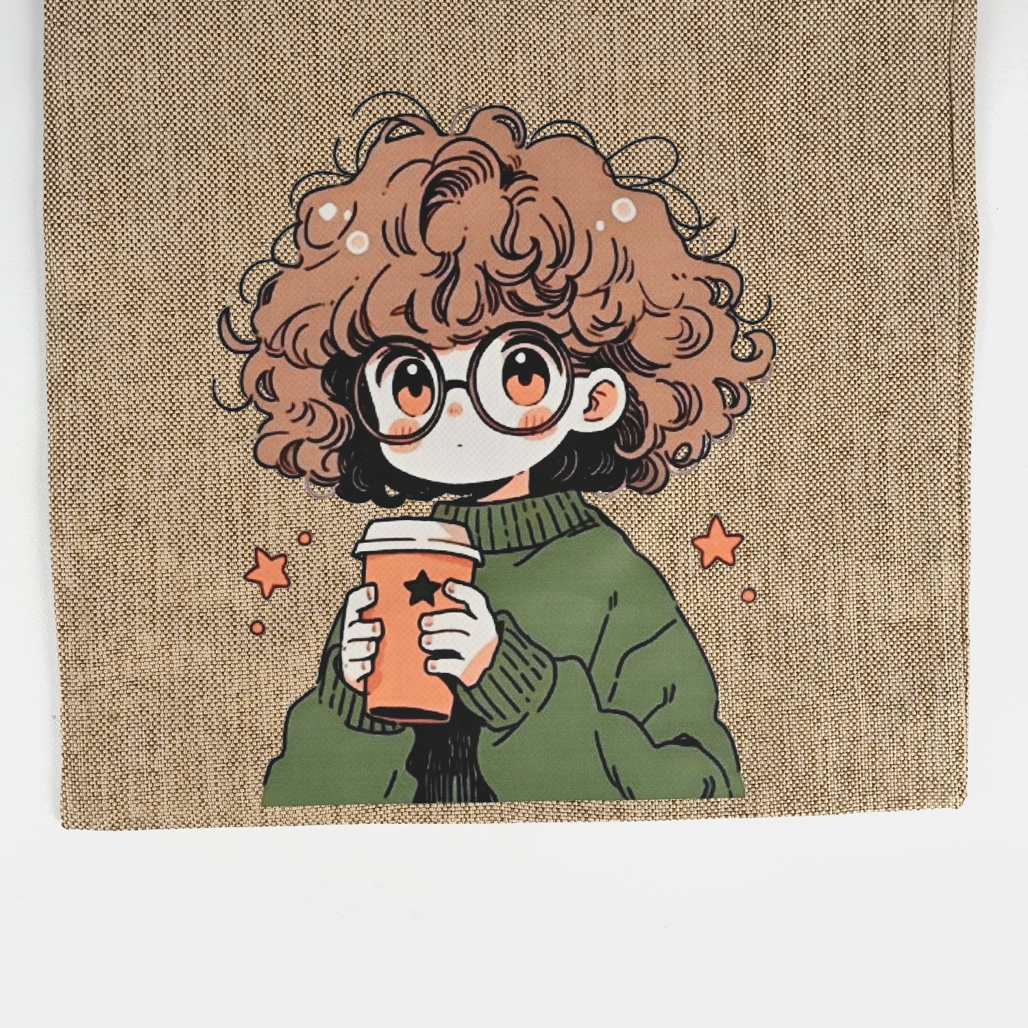 Lightweight reusable tote bag featuring cute girl graphics, perfect for daily use, shopping, or casual outings.