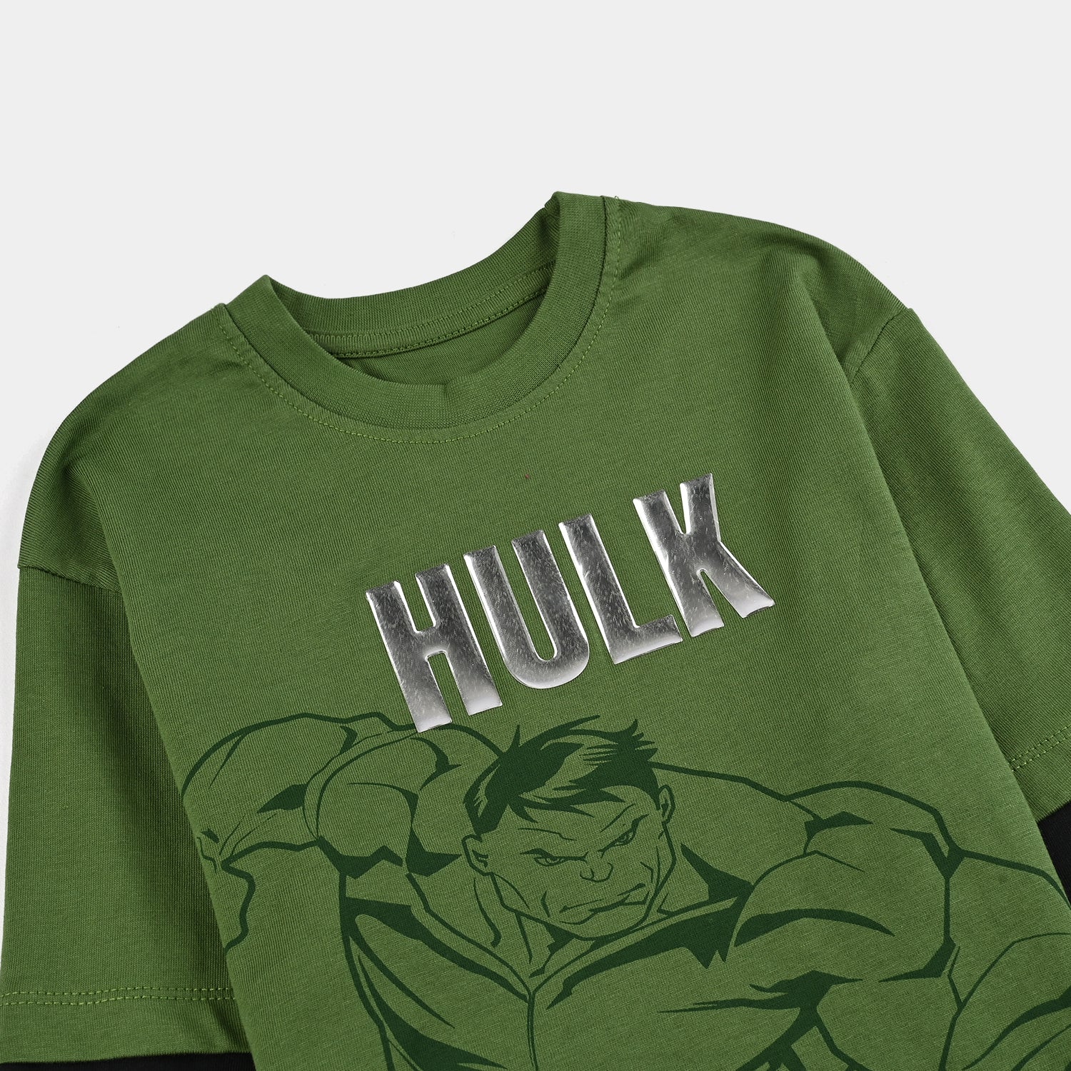 This boy's jersey/terry T-shirt features a Hulk print that brings the superhero spirit to life. With a comfortable round neck and contrasting sleeves, it combines style and ease for active fans. Made from soft, breathable fabric, it keeps him comfortable all day.