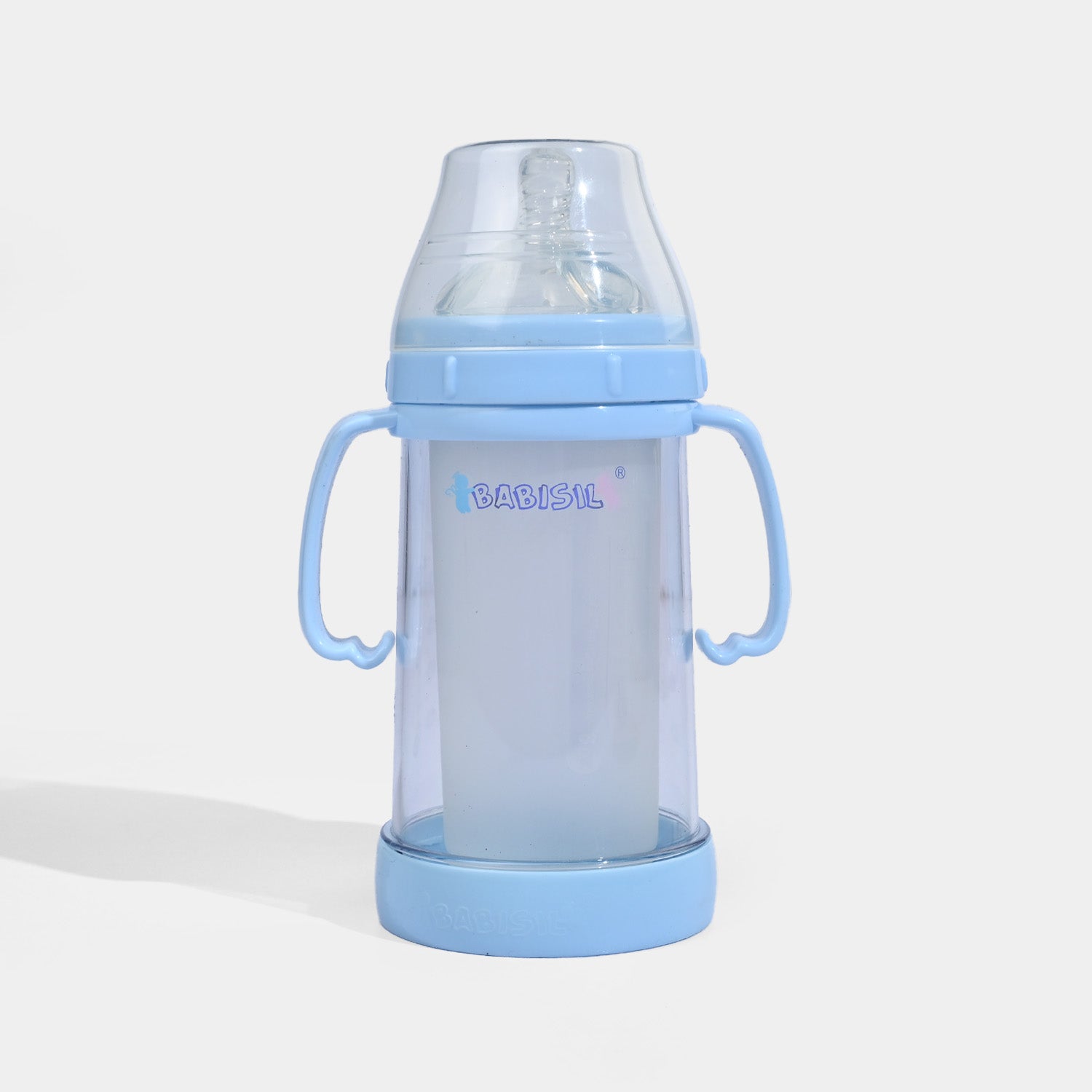 Training feeding bottle with easy-grip handles for comfortable and independent feeding.