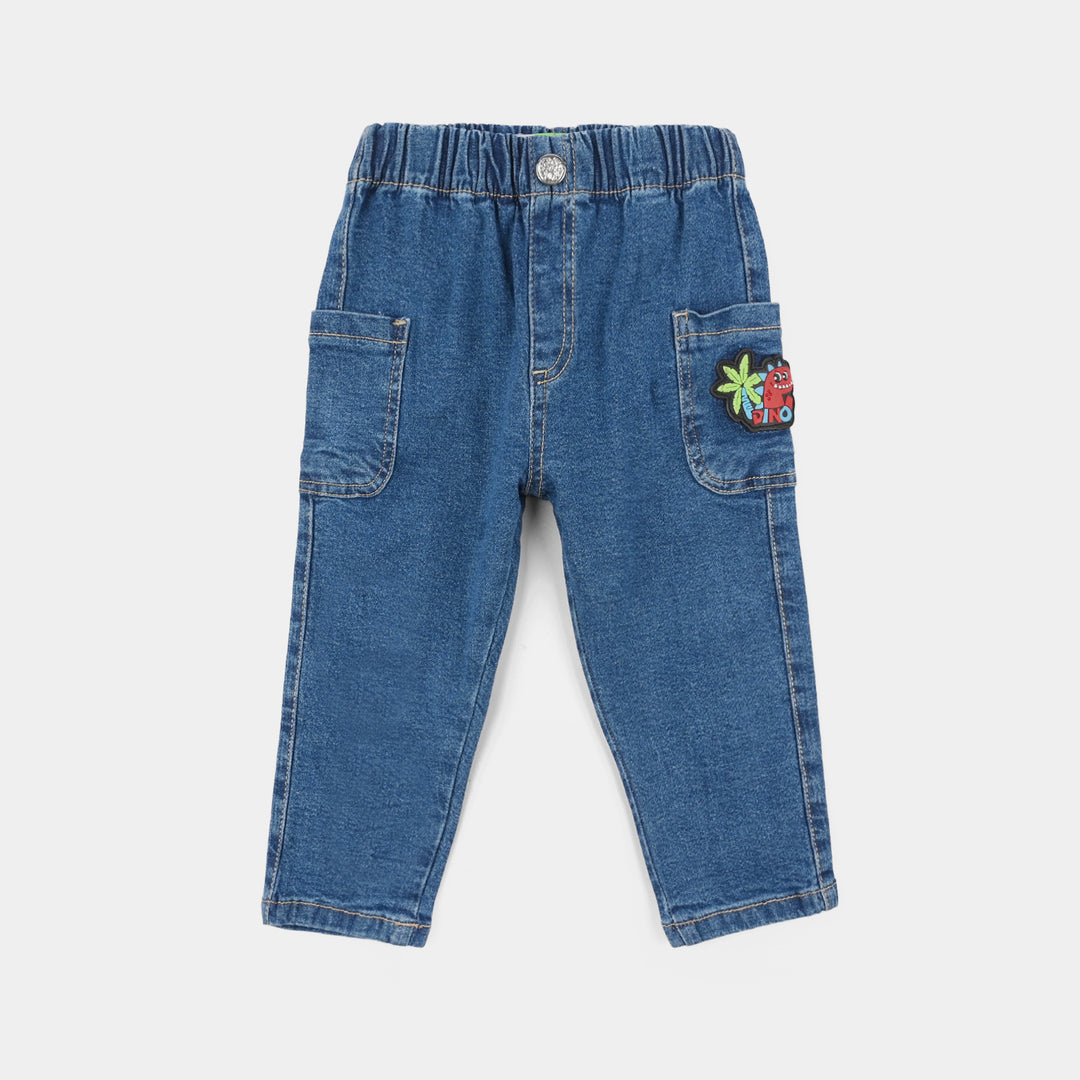 Infant Boys Denim Stretch Denim Pant Dino Friends-LIGHT BLUE