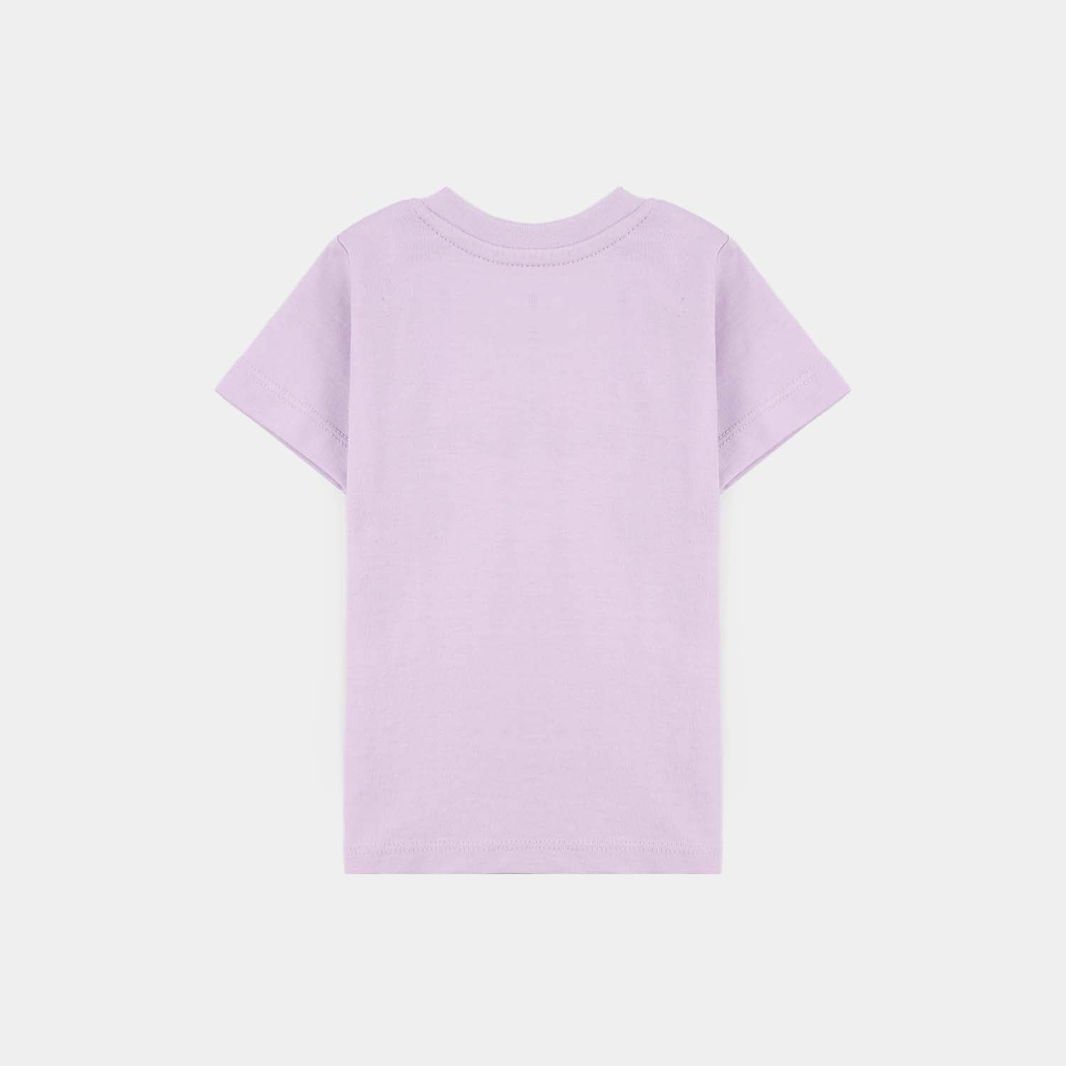 Infant girls' pastel lilac jersey terry T-shirt featuring a round neck, half sleeves, and cute fruit embellishments, perfect for a fun and comfortable everyday look.