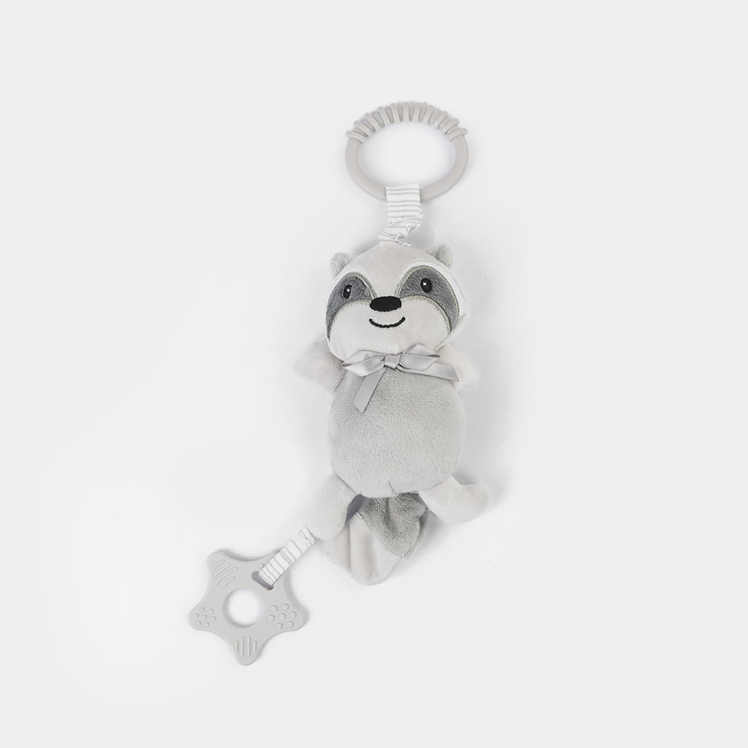 Plush baby rattle and teether toy, commonly designed to be hung from cribs or strollers.