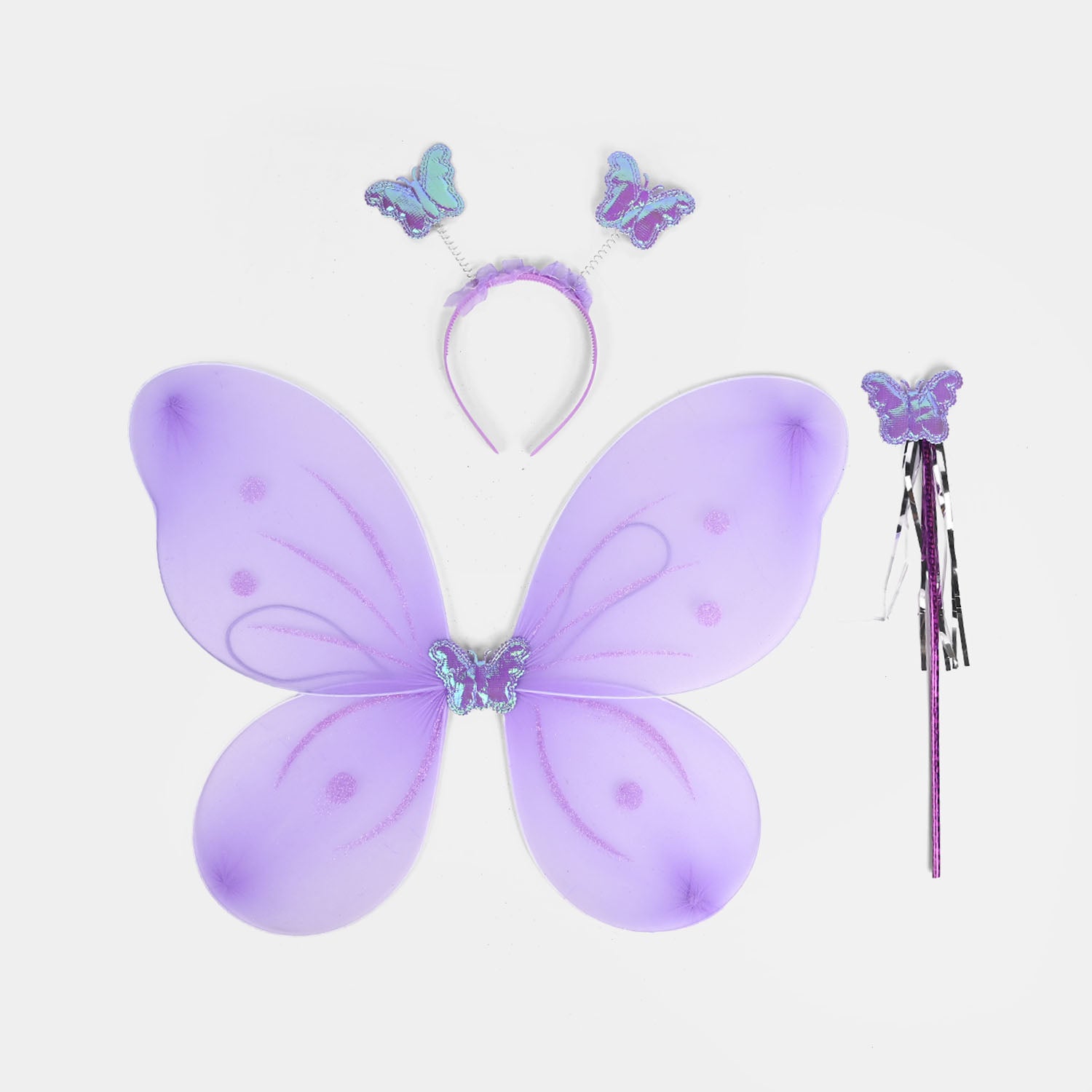 3-piece fairy wings set in purple for kids, including butterfly wings, matching hairband, and a magical wand, perfect for costume play and imaginative adventures.