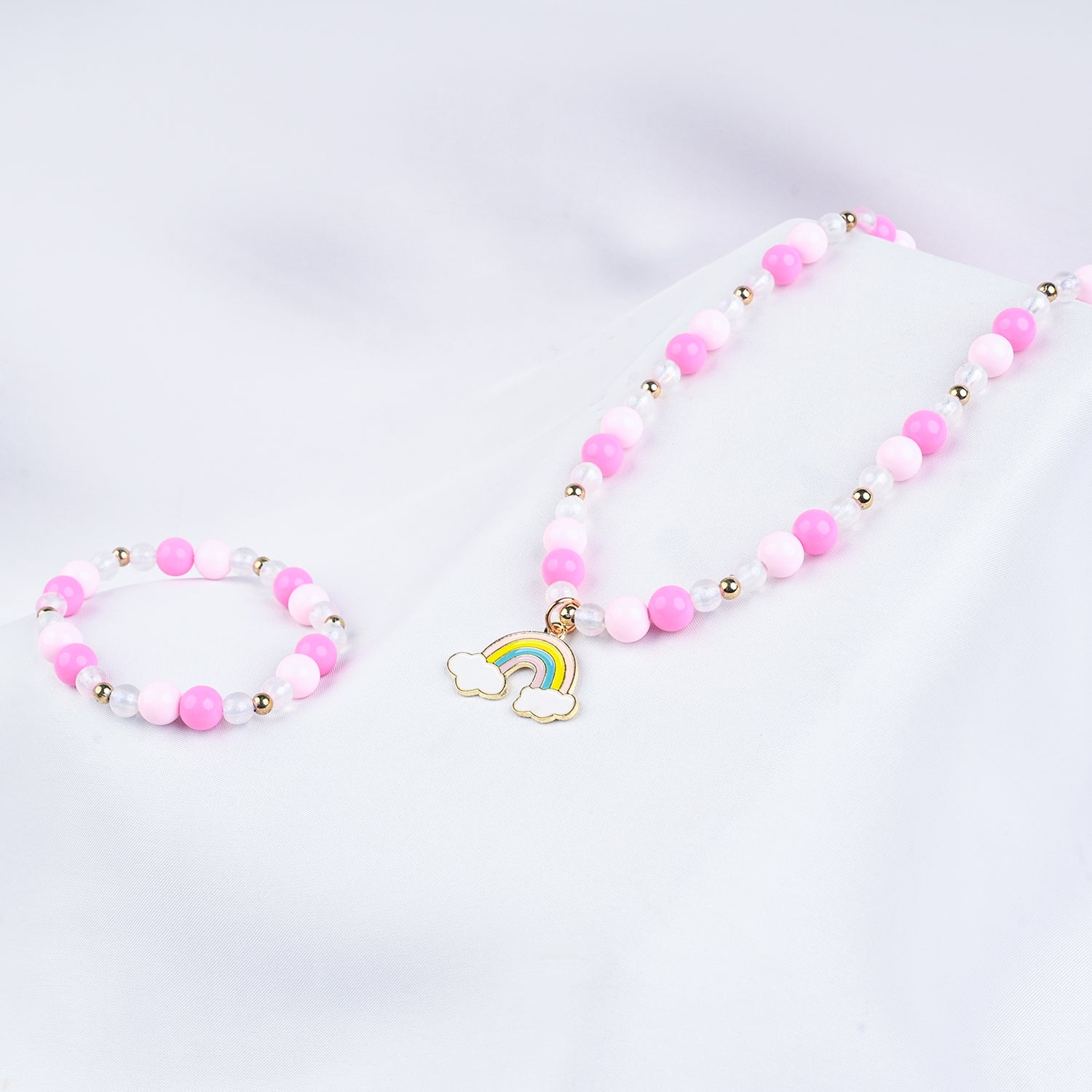 Add a pop of charm to any outfit with this adorable necklace and bracelet set! Dainty and dreamy, it’s perfect for kids who love a little sparkle.