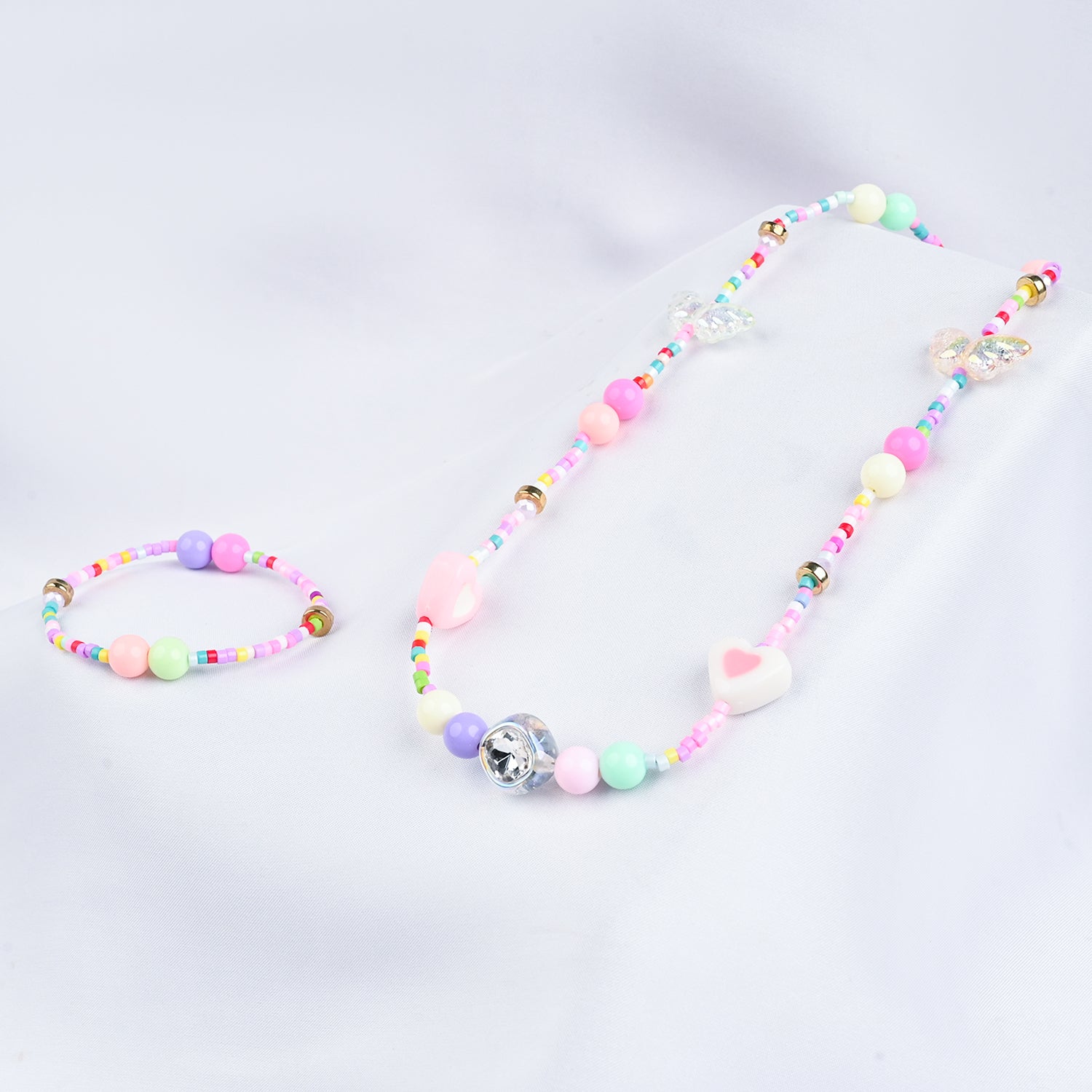 Add a pop of charm to any outfit with this adorable necklace and bracelet set! Dainty and dreamy, it’s perfect for kids who love a little sparkle.
